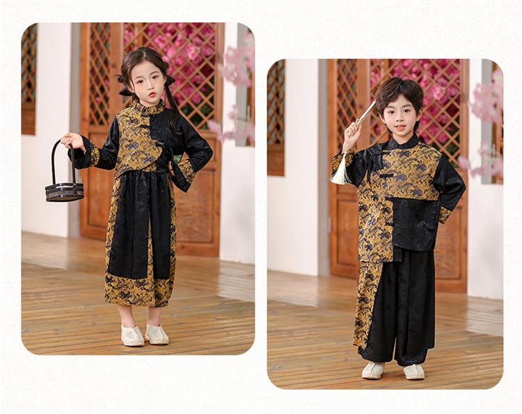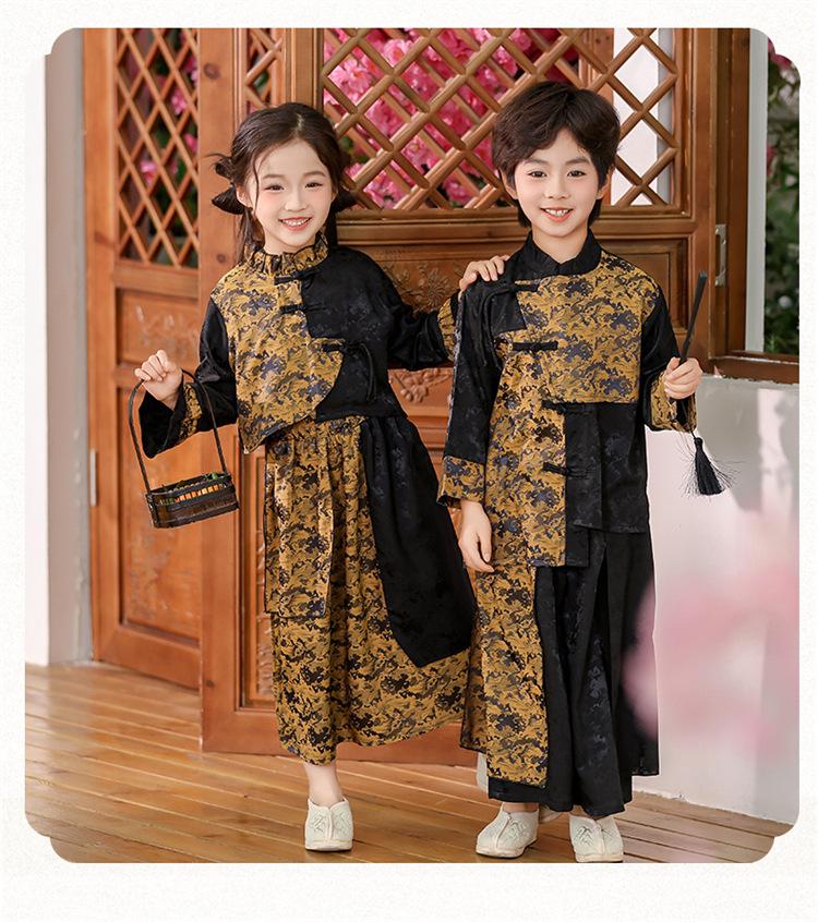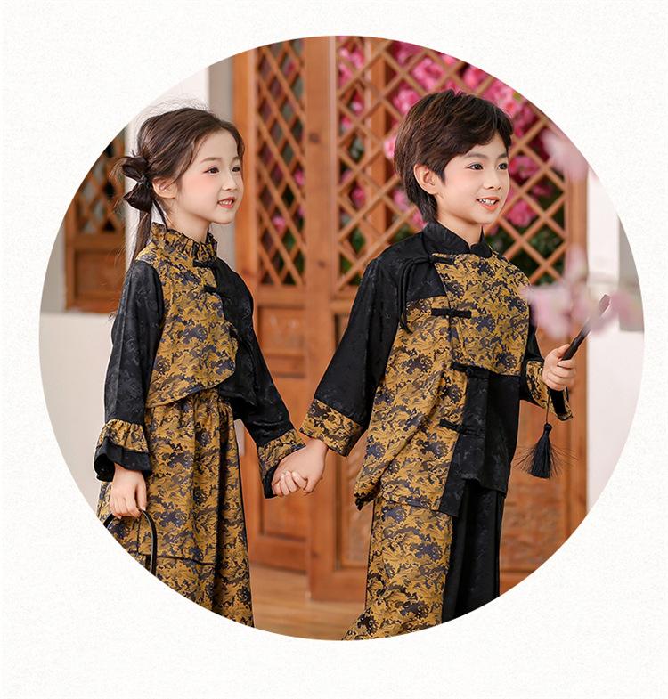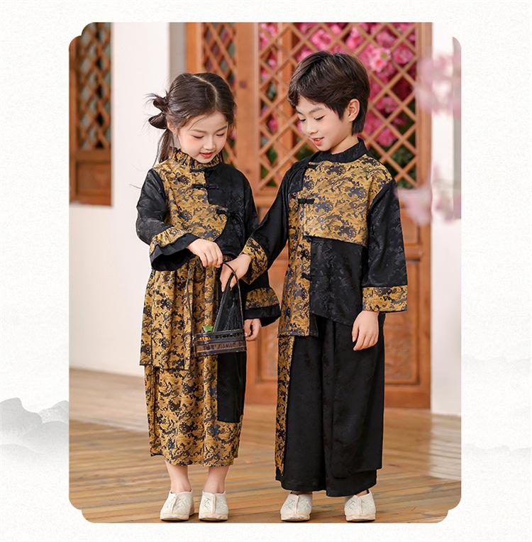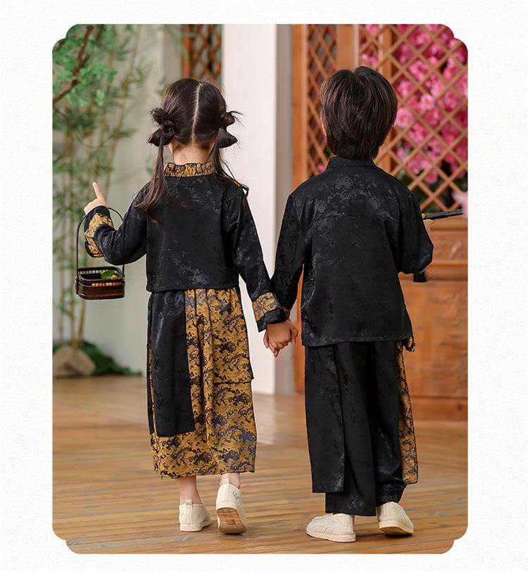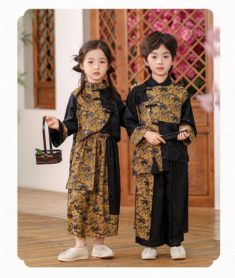 Hanfu Jacquard de Satén para Primavera y Otoño para Niños 2025 Nuevo Estilo Traje Tang para Niños y Niñas Estilo Chino Manga Larga Conjunto Chino de Dos Piezas