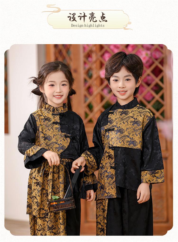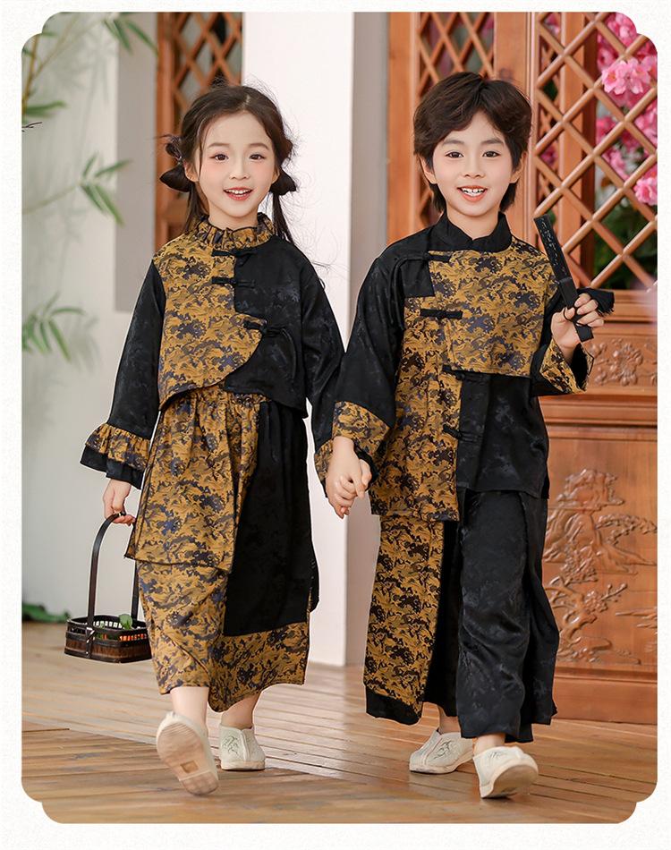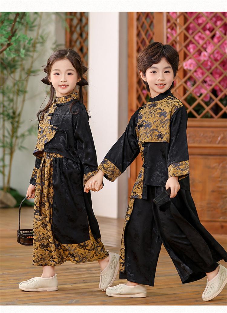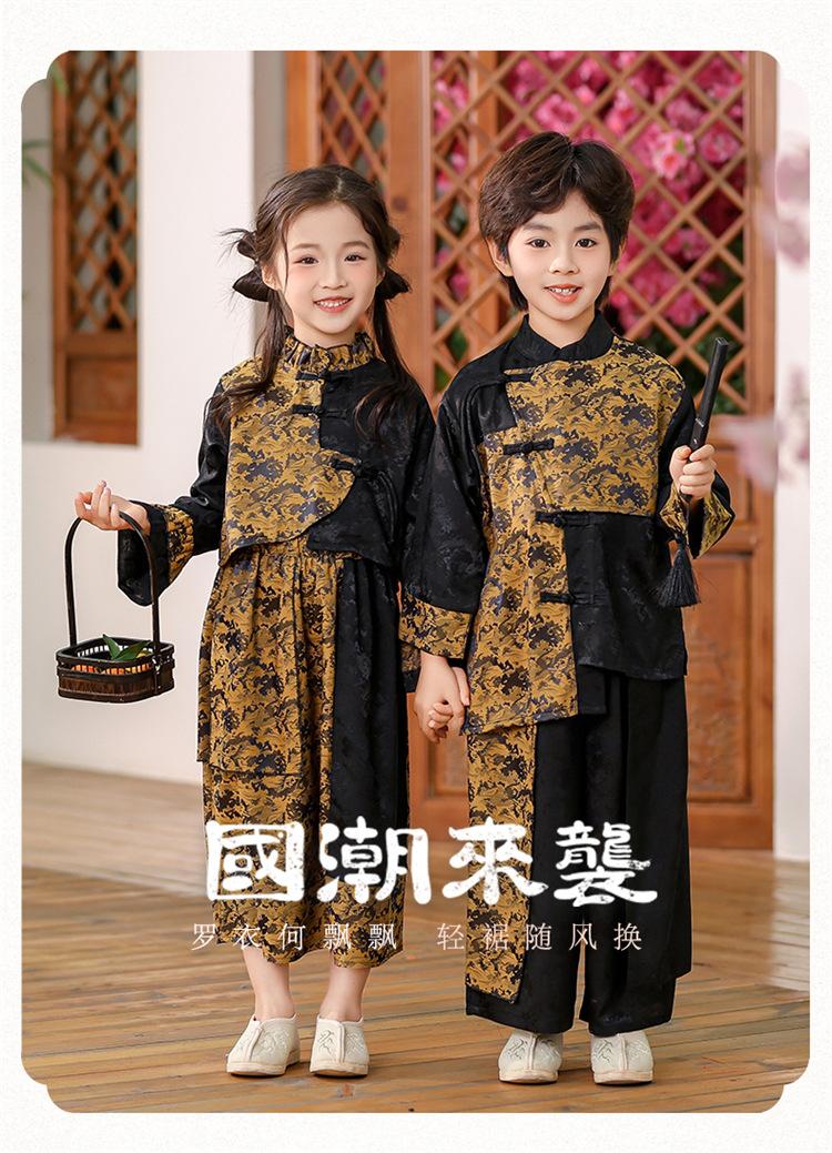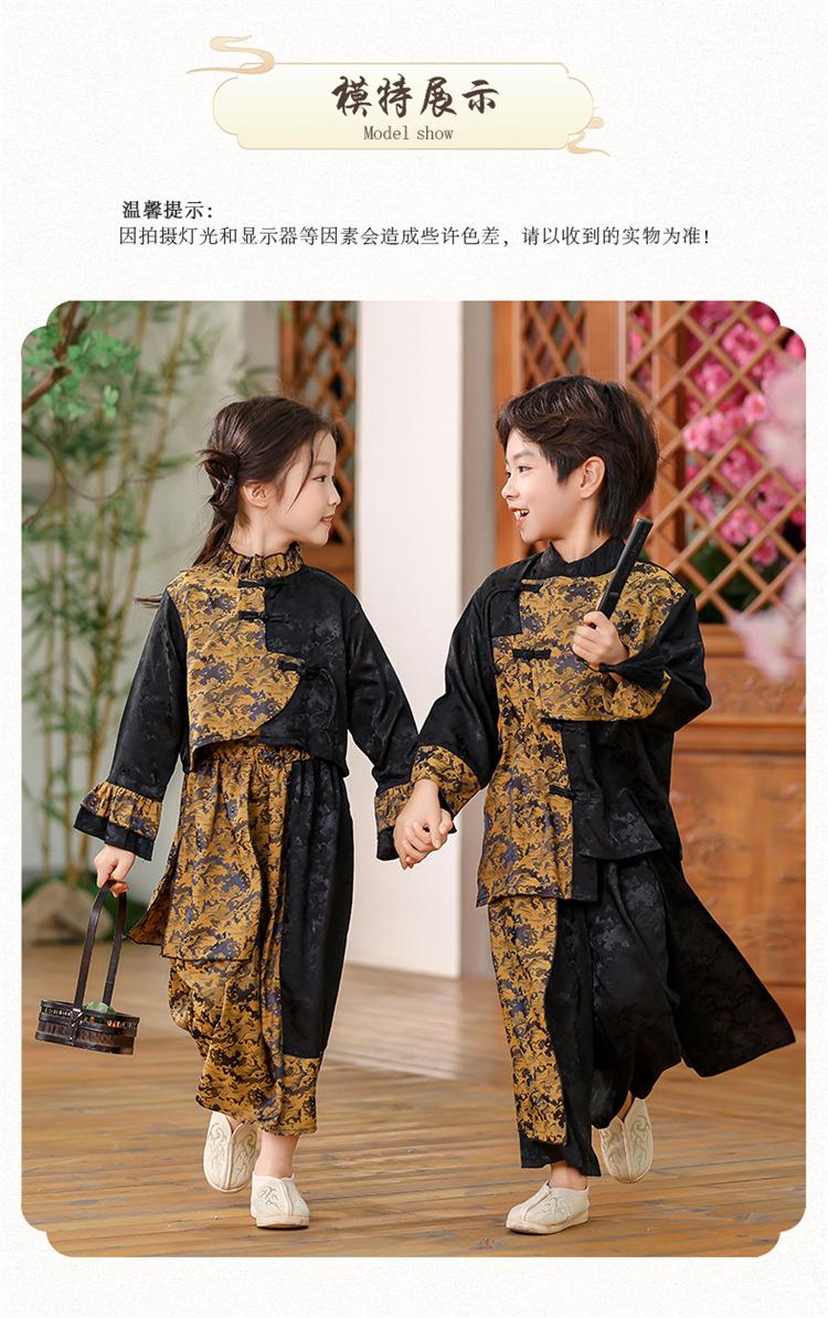 Hanfu Jacquard de Satén para Primavera y Otoño para Niños 2025 Nuevo Estilo Traje Tang para Niños y Niñas Estilo Chino Manga Larga Conjunto Chino de Dos Piezas