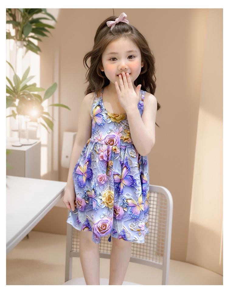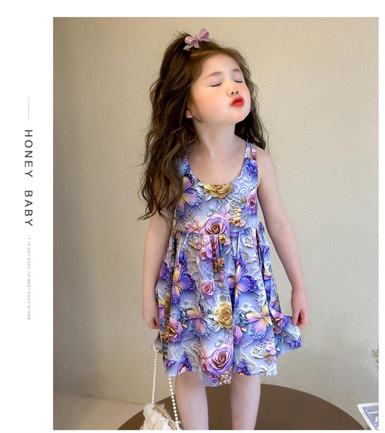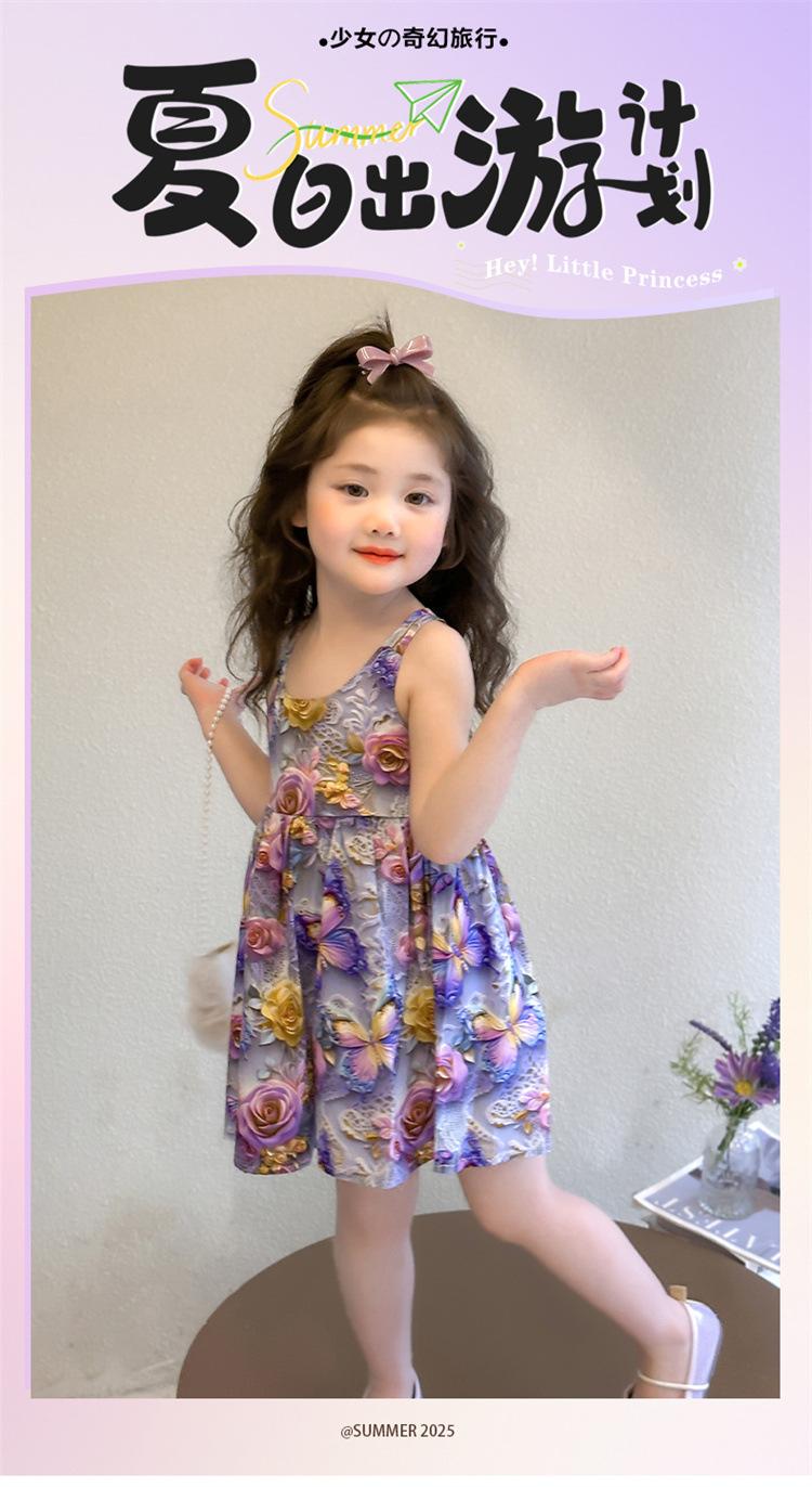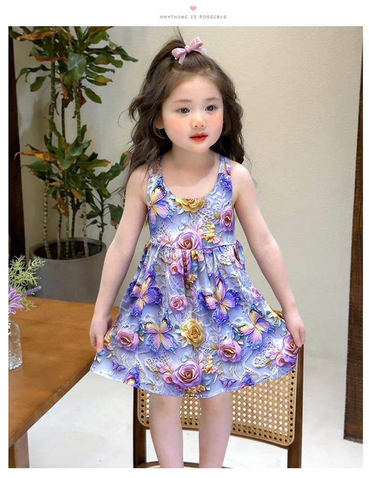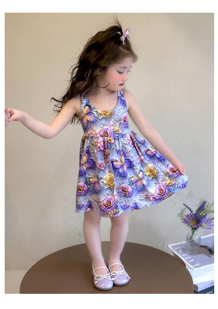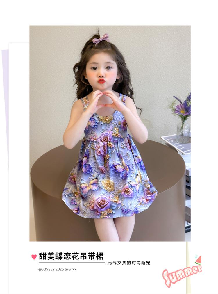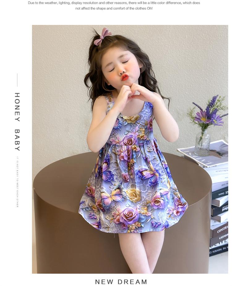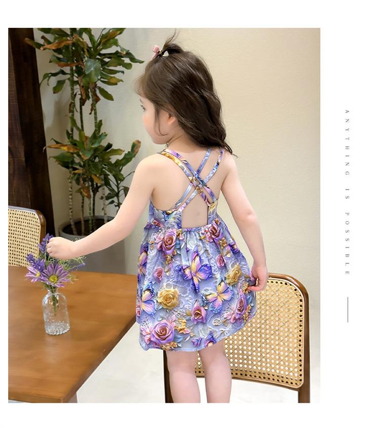 Falda de Tirantes con Mariposas 3D y Flores de Amor para Niñas 2025 Verano Nuevo Estilo Vestido de Moda para Bebé Niña Falda de Princesa