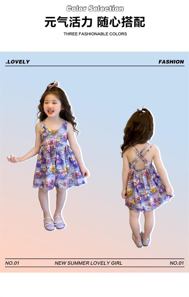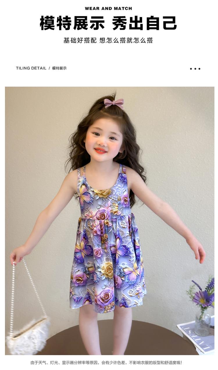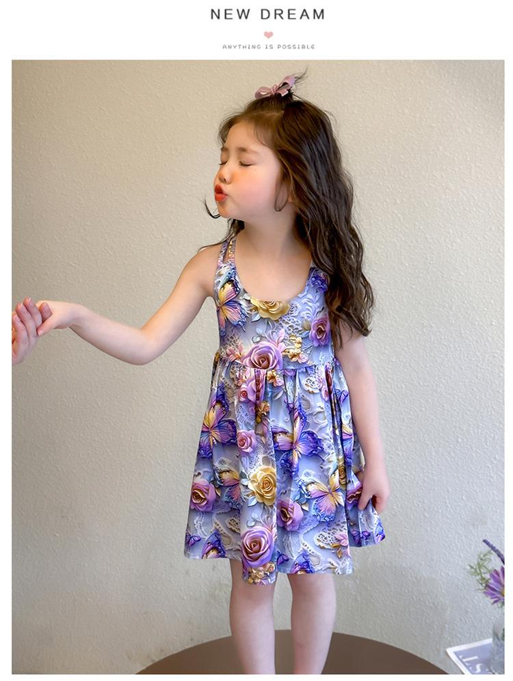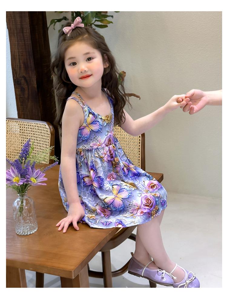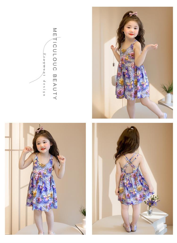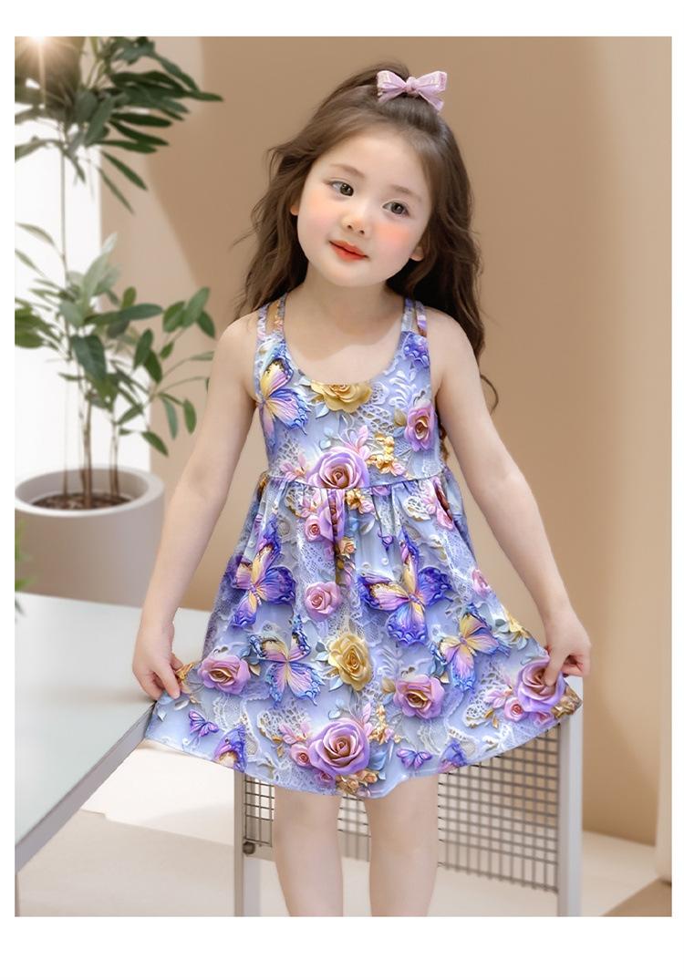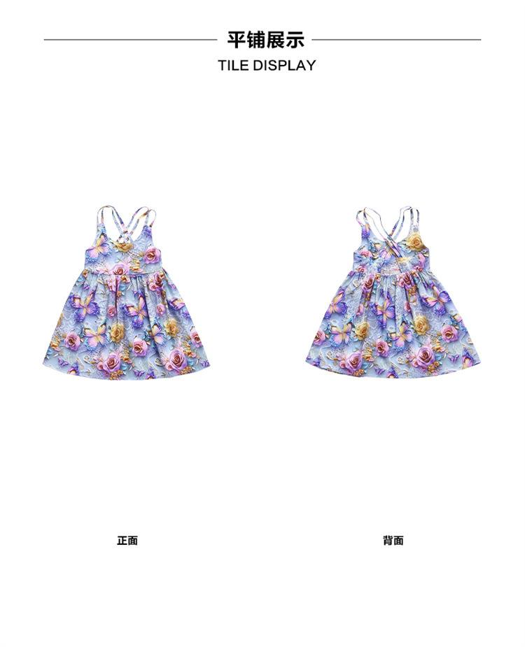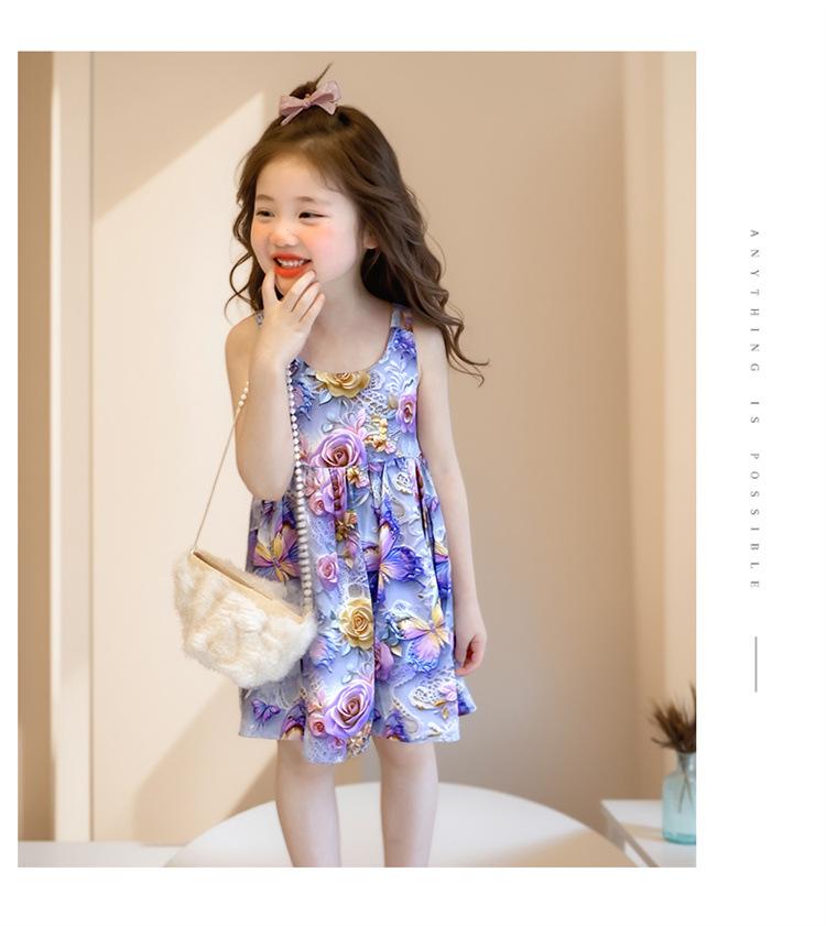Falda de Tirantes con Mariposas 3D y Flores de Amor para Niñas 2025 Verano Nuevo Estilo Vestido de Moda para Bebé Niña Falda de Princesa
