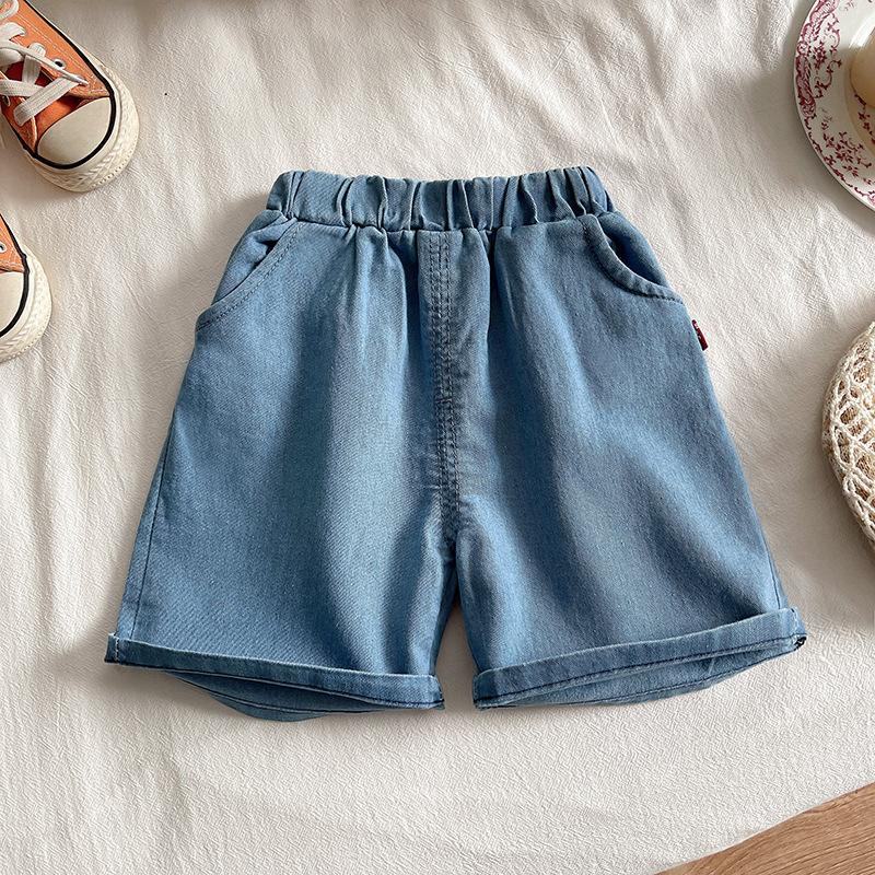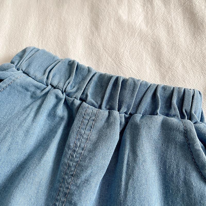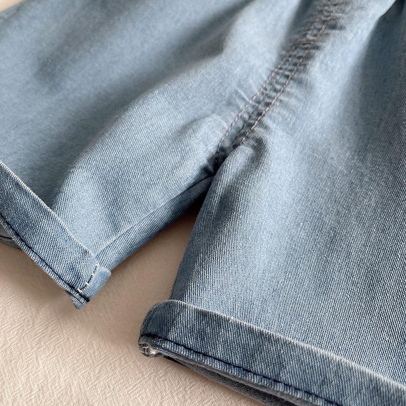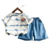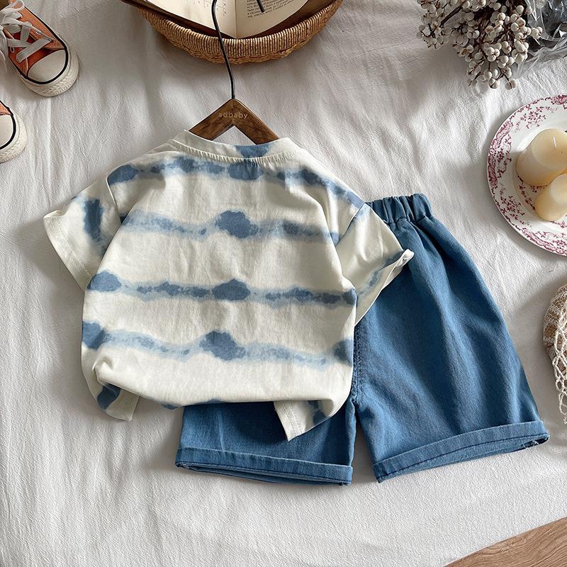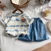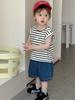 2025 Nuevo Estilo Coreano Ropa Infantil Traje de Verano de Manga Corta para Niños Camiseta a Rayas Shorts de Mezclilla Suave Conjunto de Verano de Dos Piezas