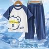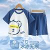 Hu-icy cotton shorts suit) blue and white bear