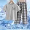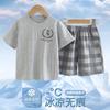 Hu-icy cotton shorts suit) gray chest label