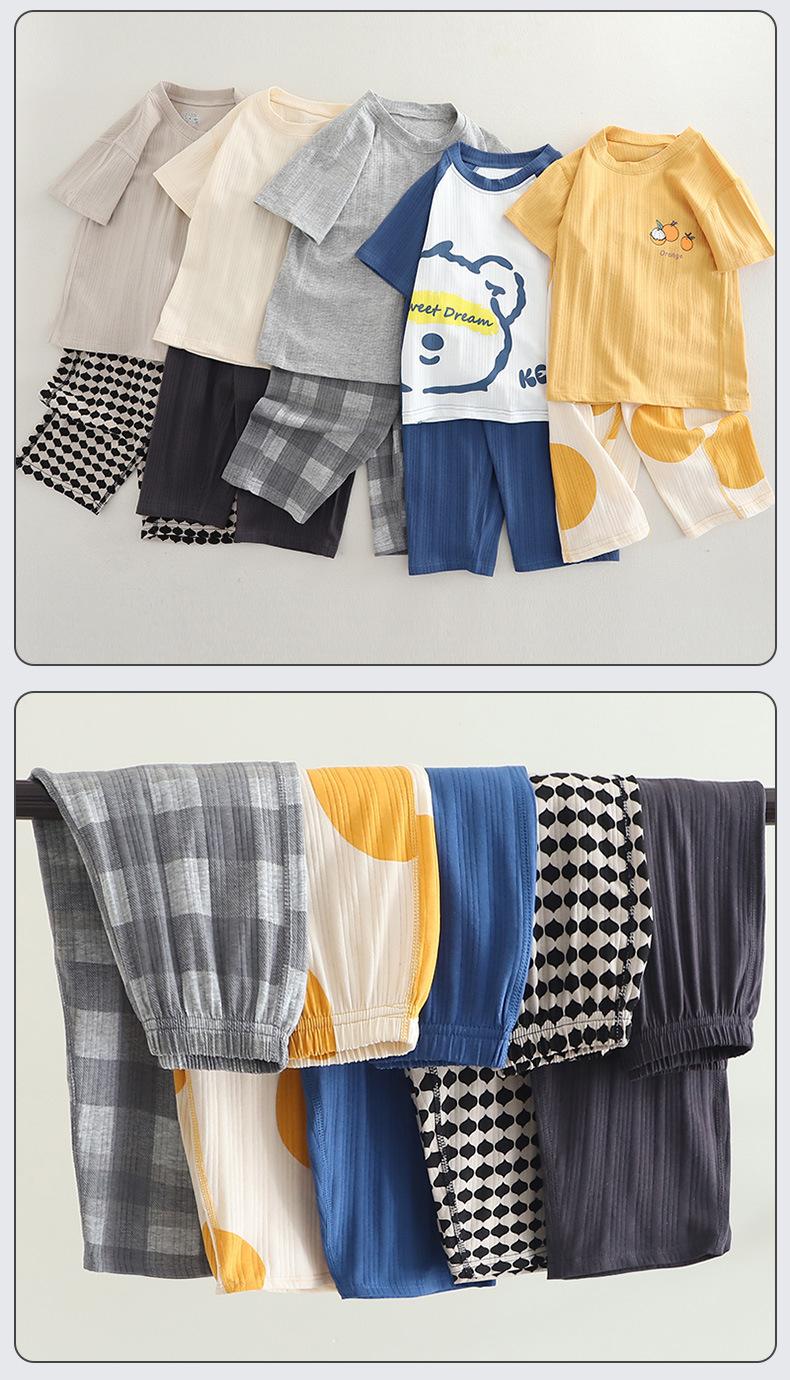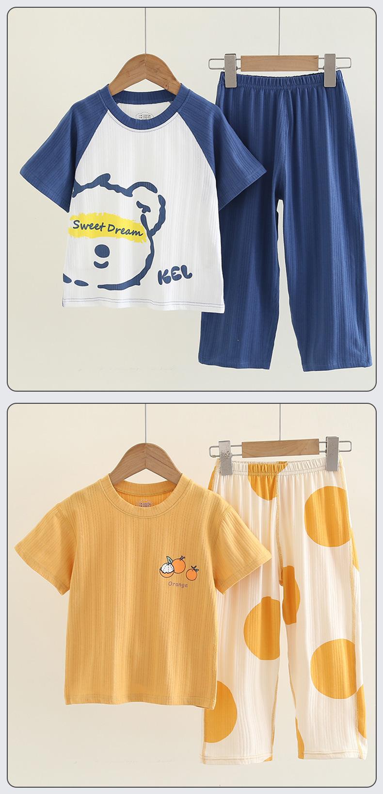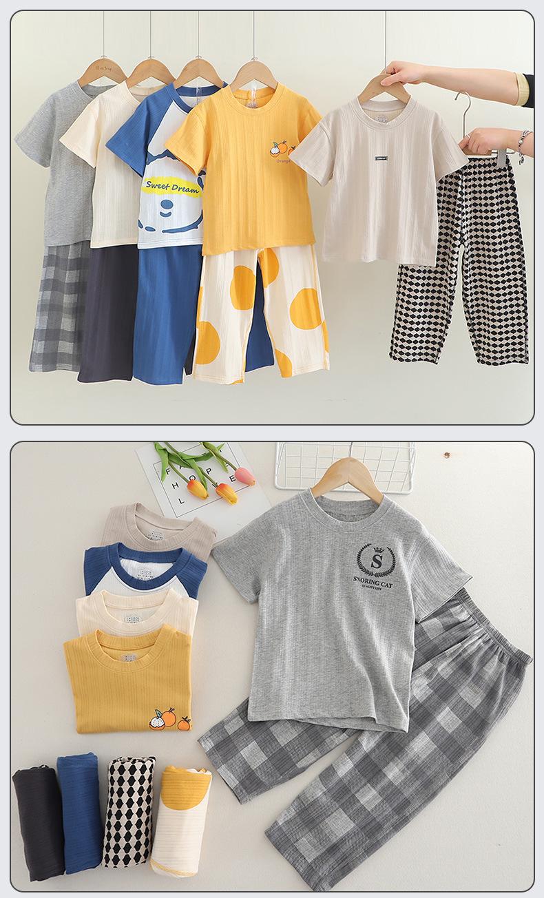 Pijamas de Niño Verano Delgado Algodón Puro Traje de Manga Corta Ropa de Casa para Niñas Ropa Familiar Ropa para Aire Acondicionado