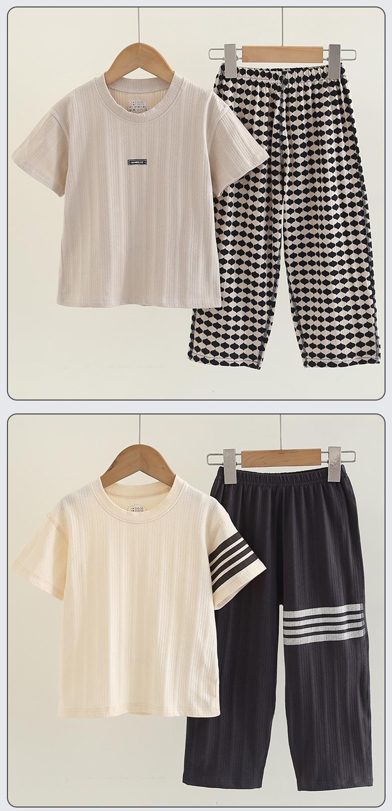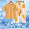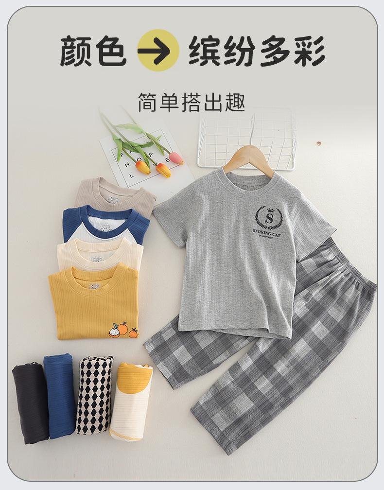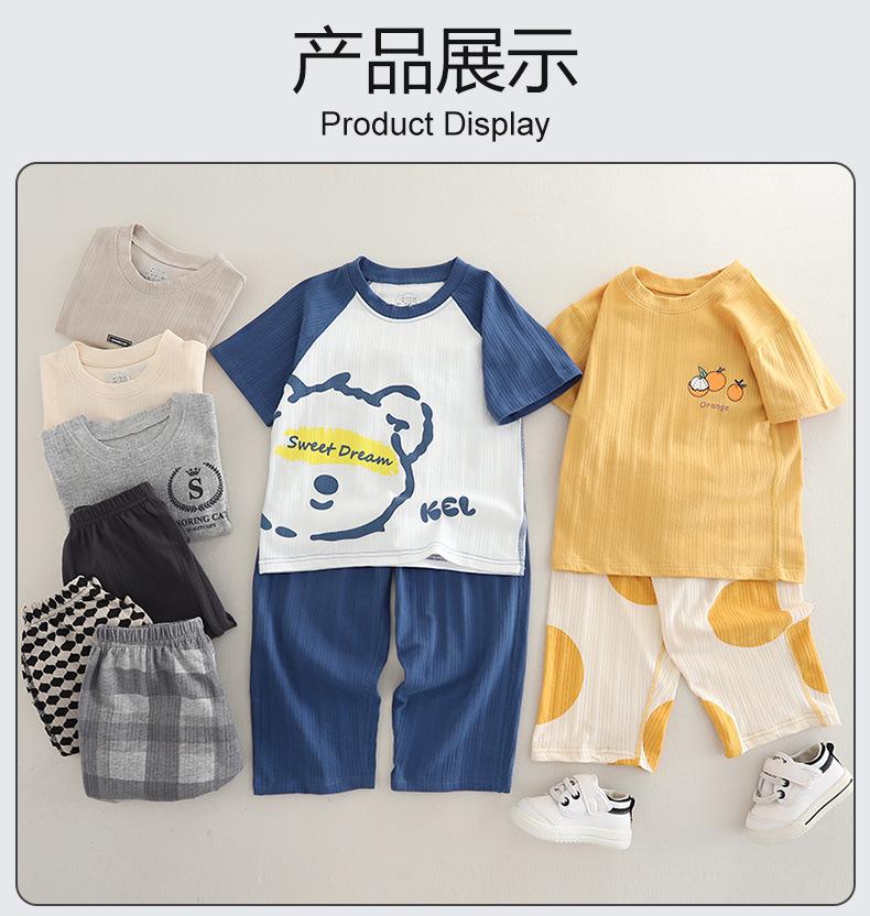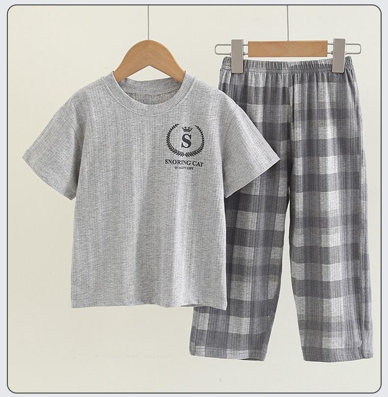 Pijamas de Niño Verano Delgado Algodón Puro Traje de Manga Corta Ropa de Casa para Niñas Ropa Familiar Ropa para Aire Acondicionado