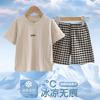 Hu-icy cotton shorts suit) khaki chest label