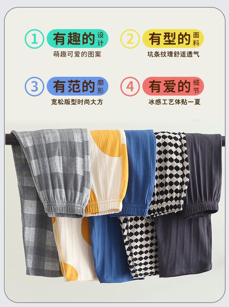 Hu-icy cotton nine-point pants suit) blue and white bear