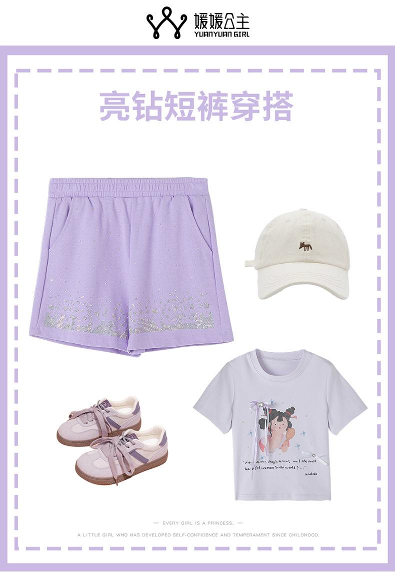 Princesa Yuan Yuan 2025 Nuevo Verano Niñas Brillantes Diamantes de Imitación Elástico Cintura Shorts Ropa para Niños al por Mayor