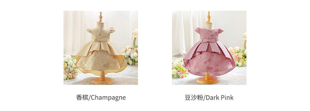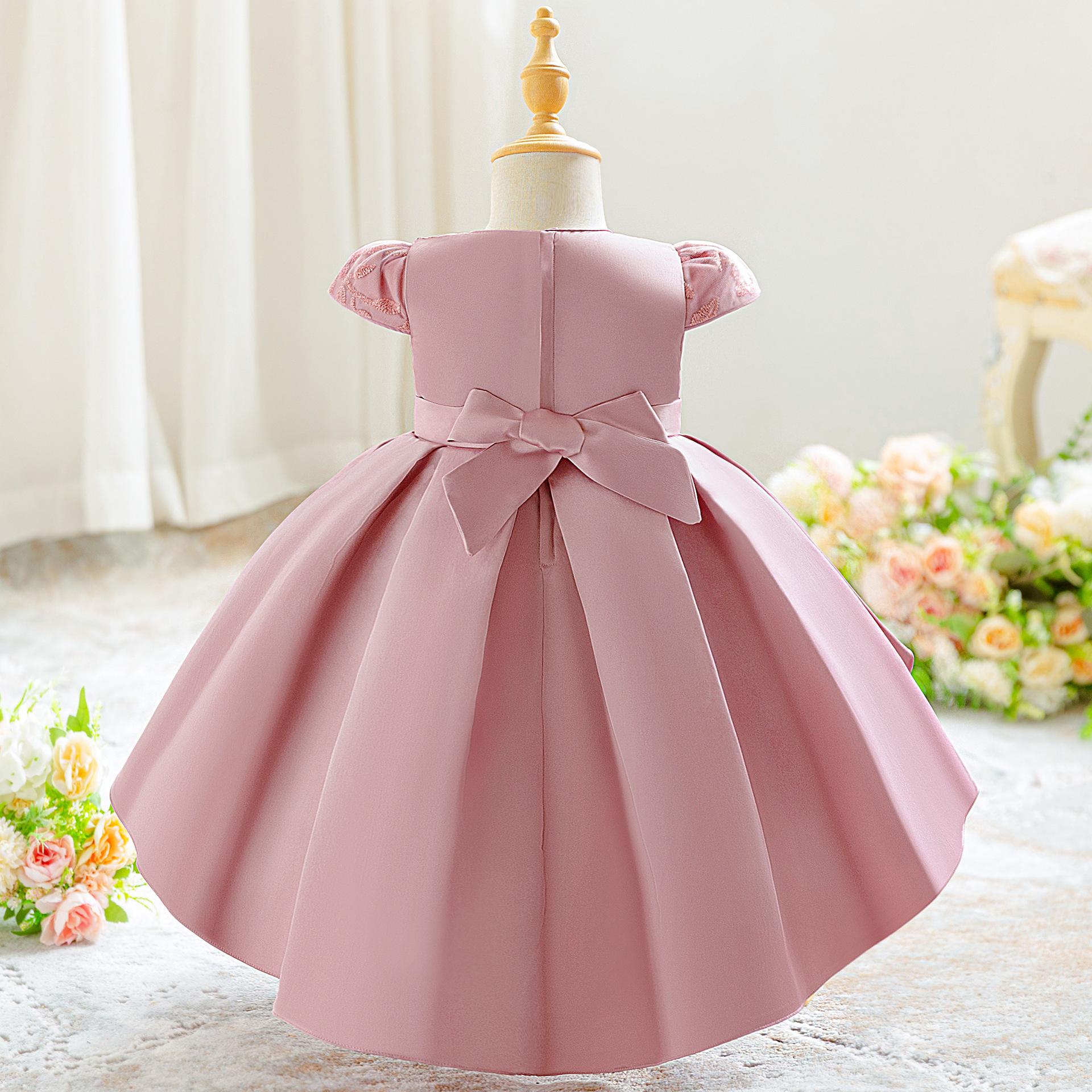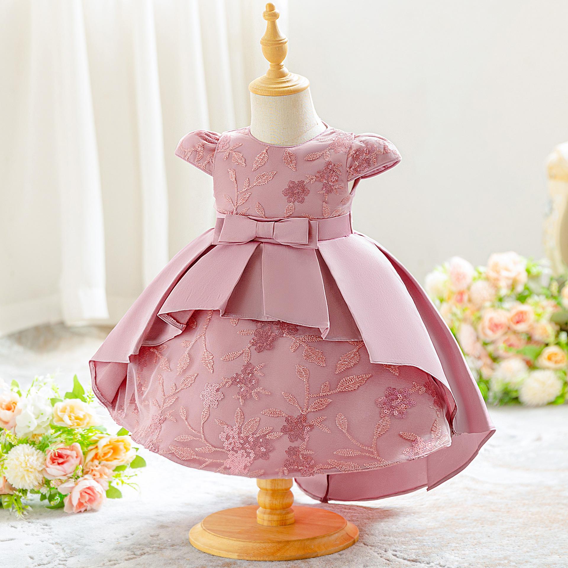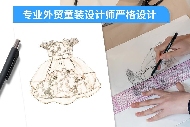 Nuevo Vestido de Princesa Bordado Transfronterizo Vestido para Niños Vestido de Cola de Manga Corta Vestido para Niños Vestido Largo