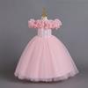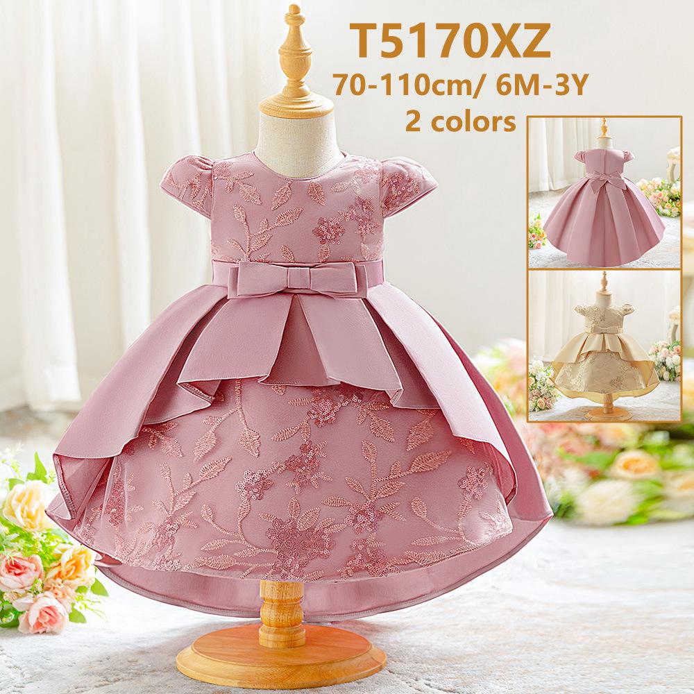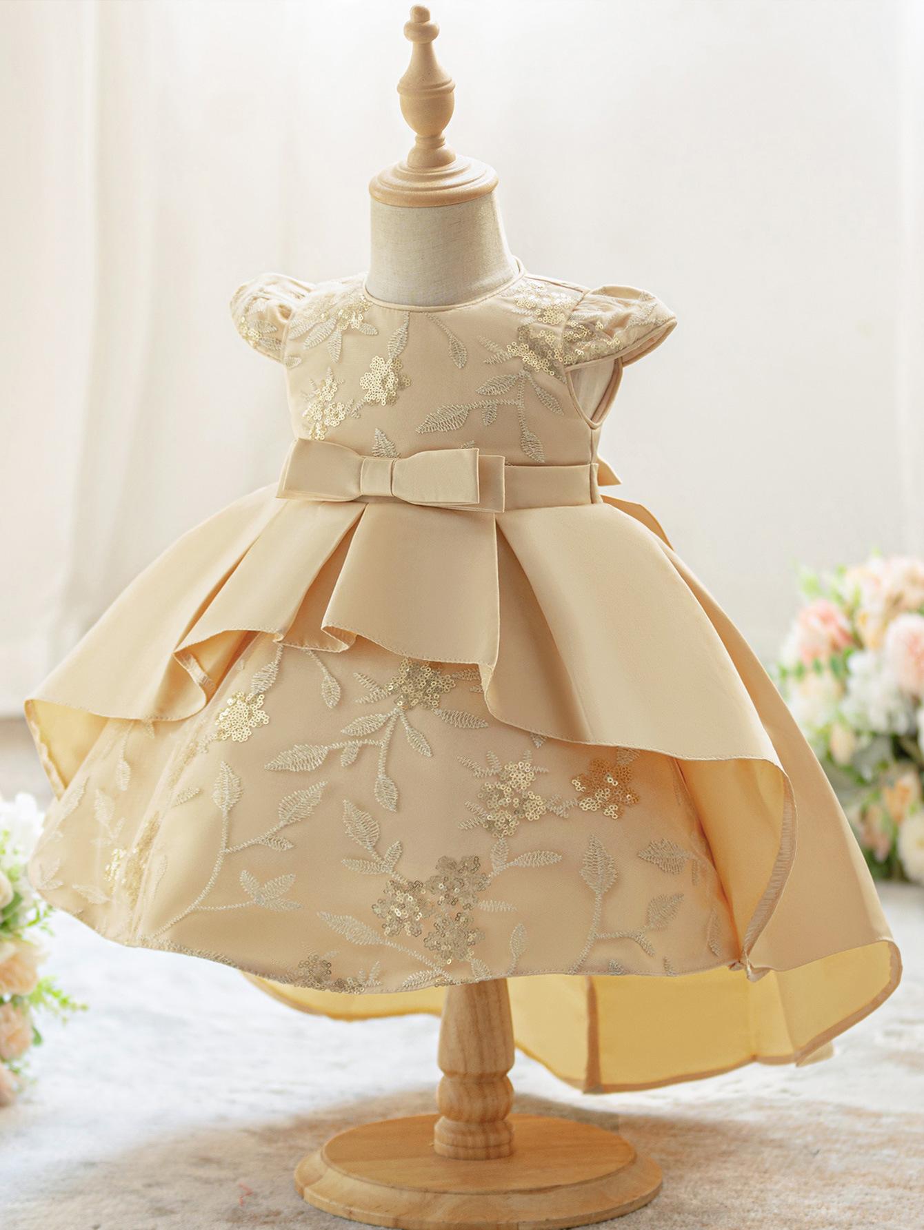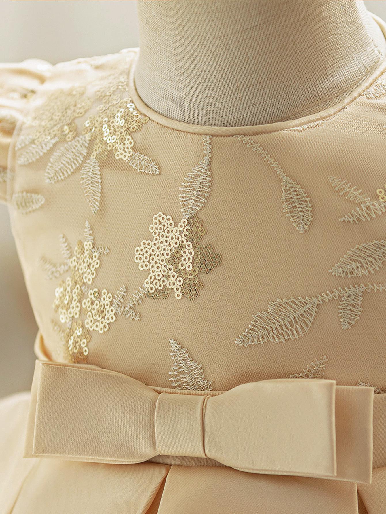 Nuevo Vestido de Princesa Bordado Transfronterizo Vestido para Niños Vestido de Cola de Manga Corta Vestido para Niños Vestido Largo