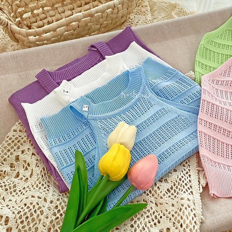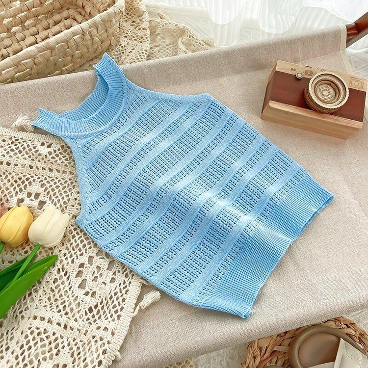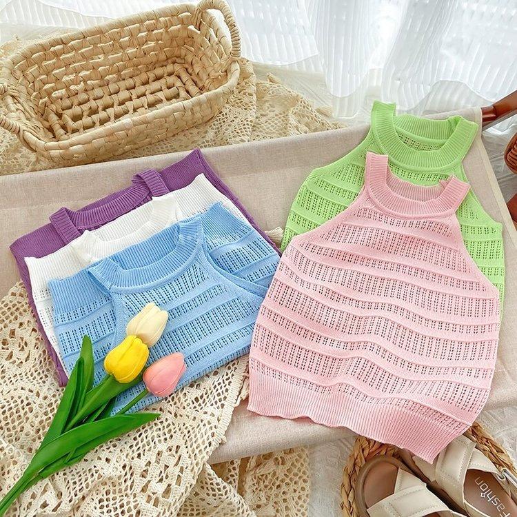 Camisola Infantil de Alta Gama 2025 Verano Nueva Moda Color Sólido Chaleco sin Mangas para Niñas