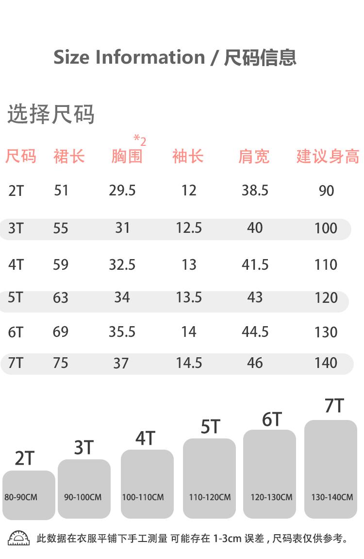 2T/90cm, 3T/100cm, 4T/110cm, 5T/120cm, 6T/130cm, 7T/140cm