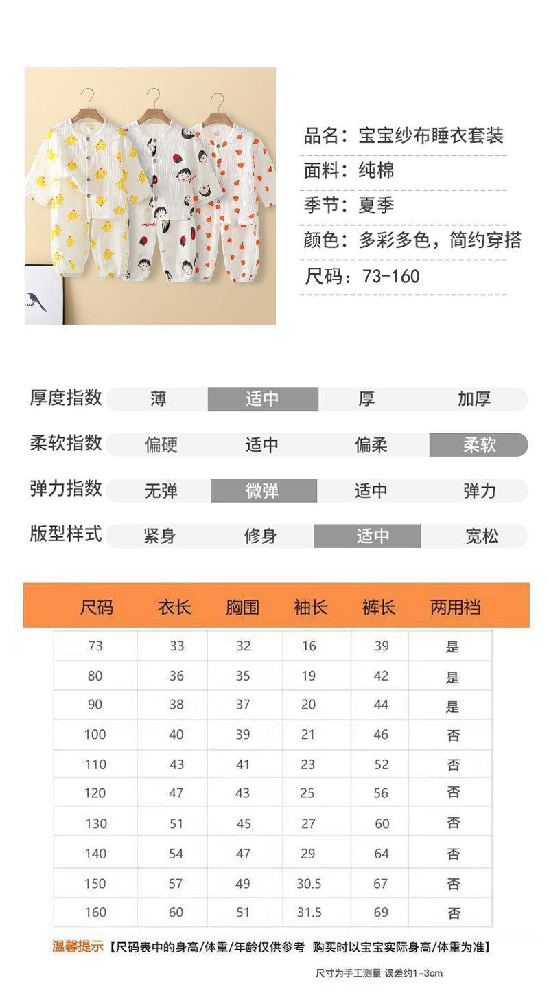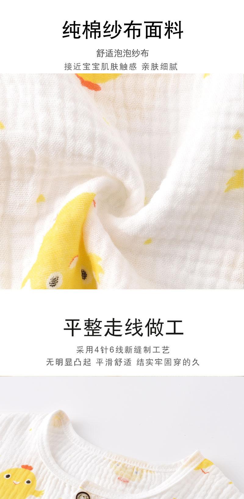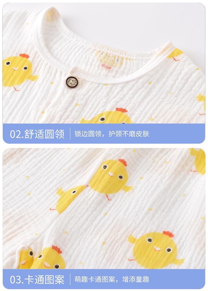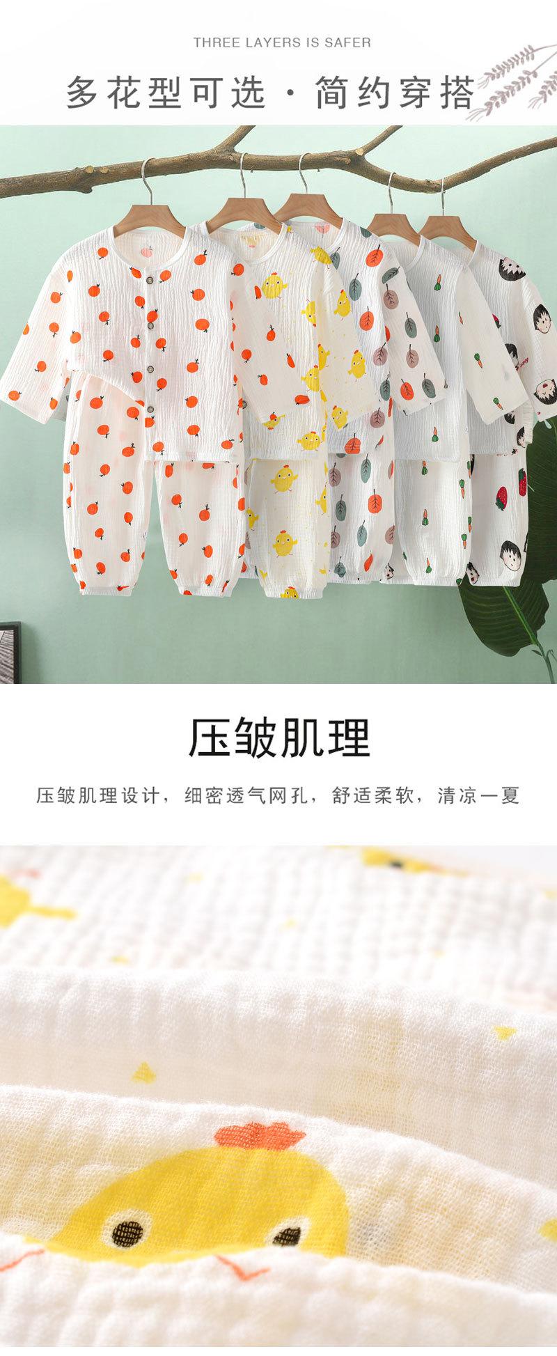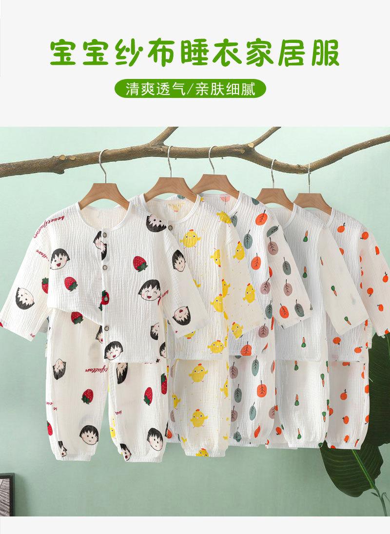 Traje de Verano para Niño y Niña Pijama Ropa de Aire Acondicionado para Bebé Gasa de Doble Capa Algodón Puro Fino Ropa de Casa de Algodón Puro para Niños