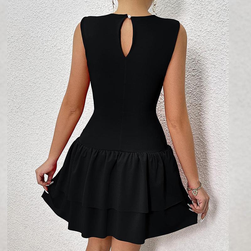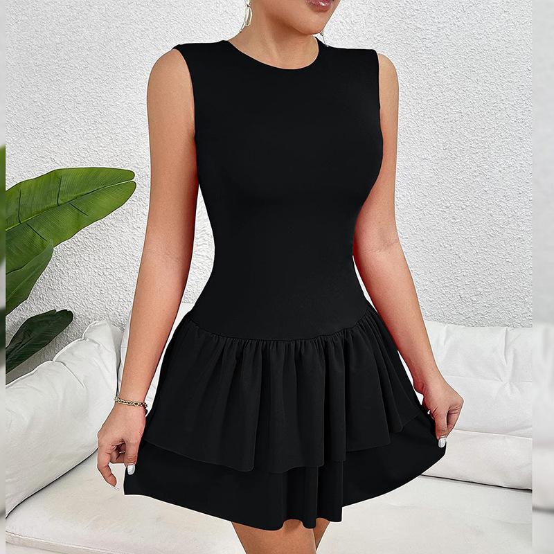 Estilo Europeo y Americano Moda de Verano para Mujer Falda Sencilla Pura Tipo Pastel Falda Sin Mangas Sexy Casual Vestido Elegante