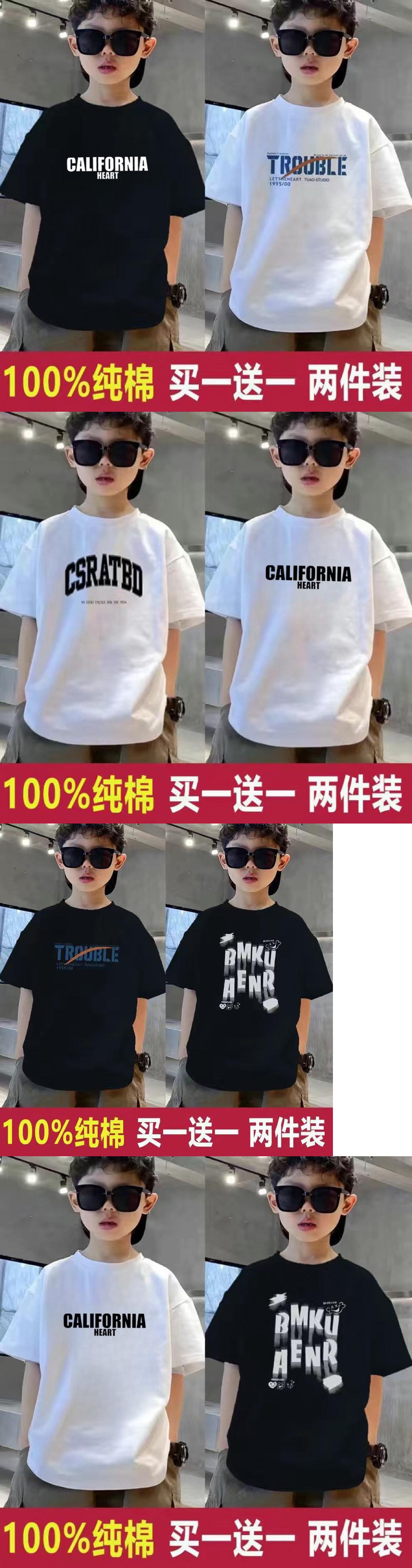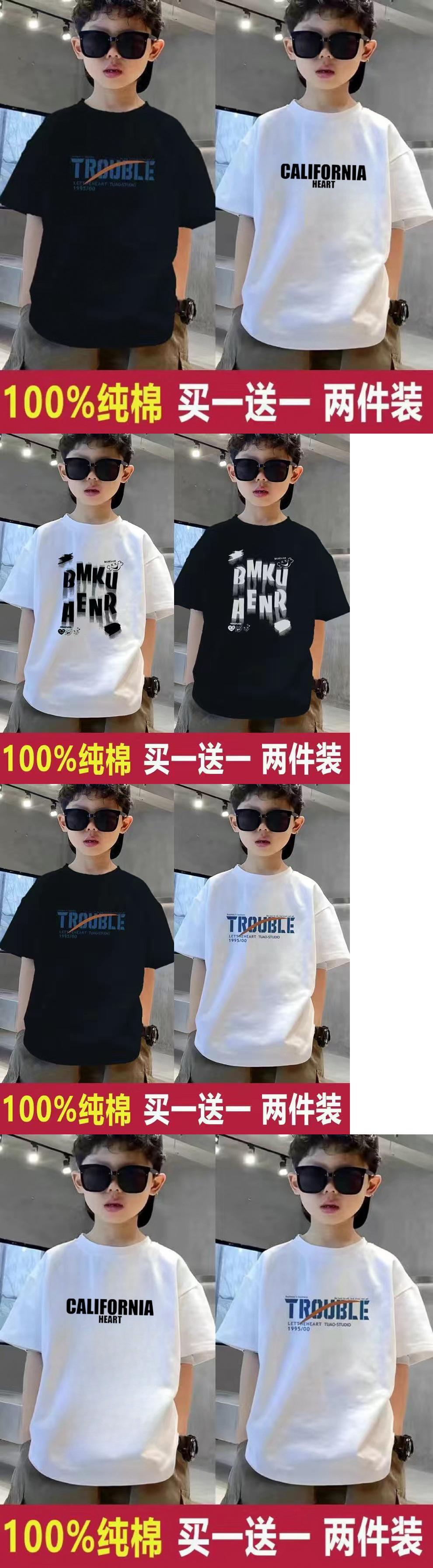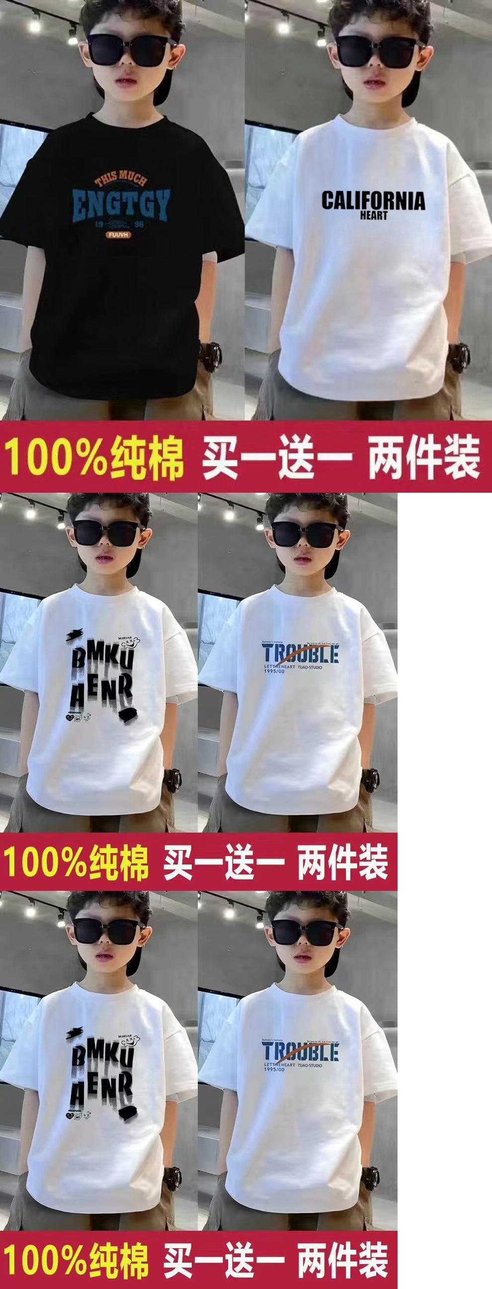 Ropa para niños, camisetas de algodón puro para niños de tallas medianas y grandes, moda de nuevo estilo, bonitas camisetas para niños, camisetas sueltas de manga corta y media manga de verano.