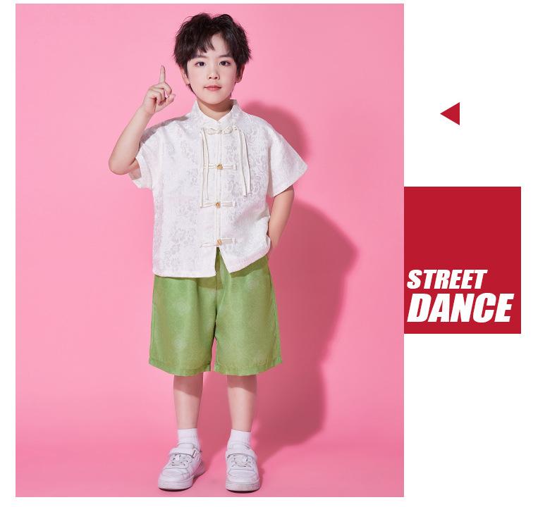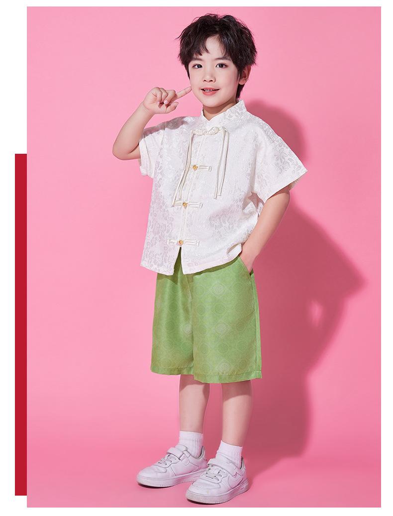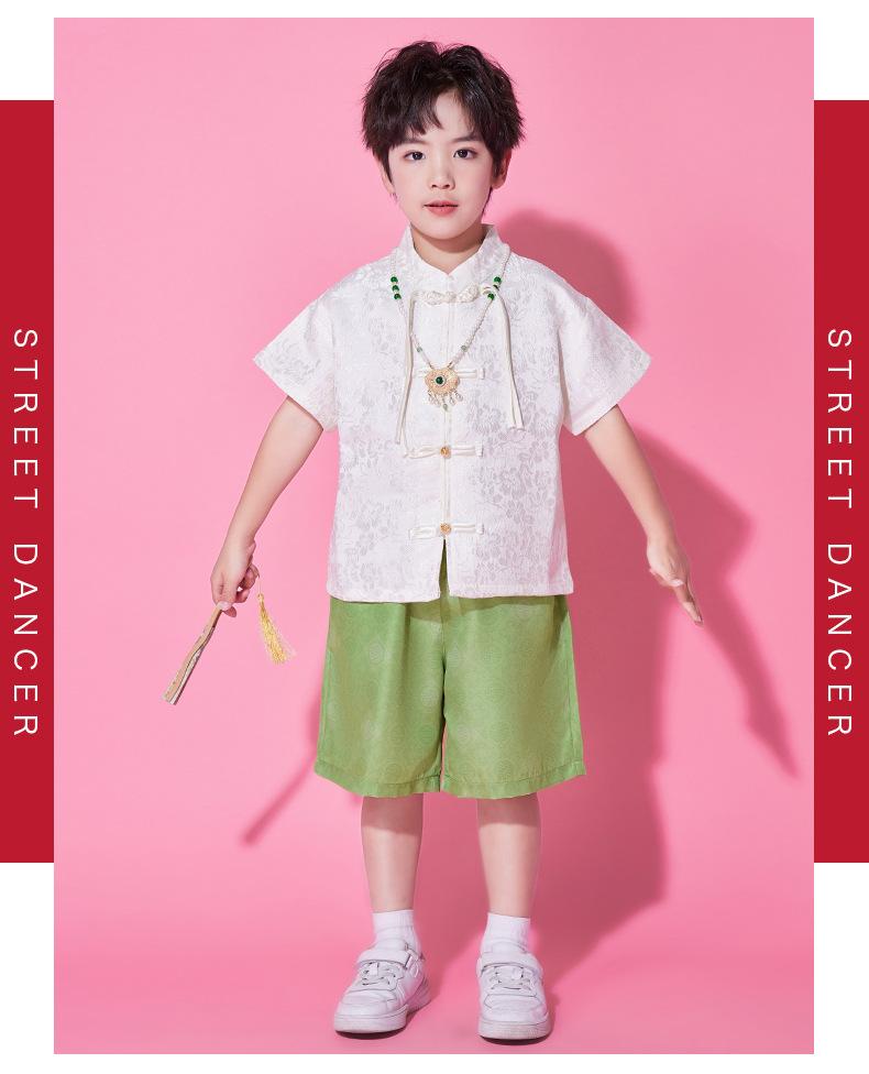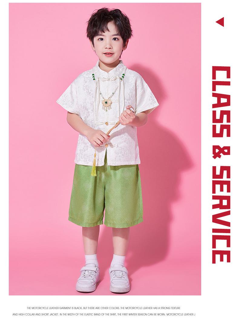 H2027 men's white jacquard short sleeves + h2068 light green shorts + longevity lock + white ink fan