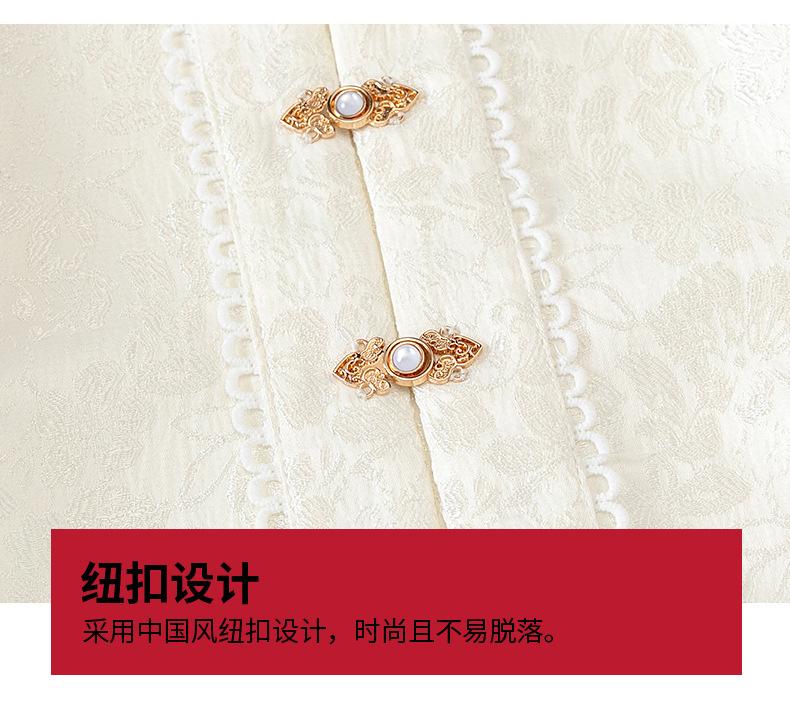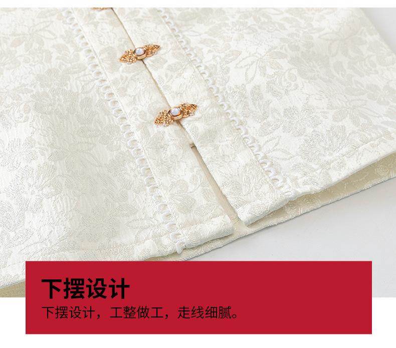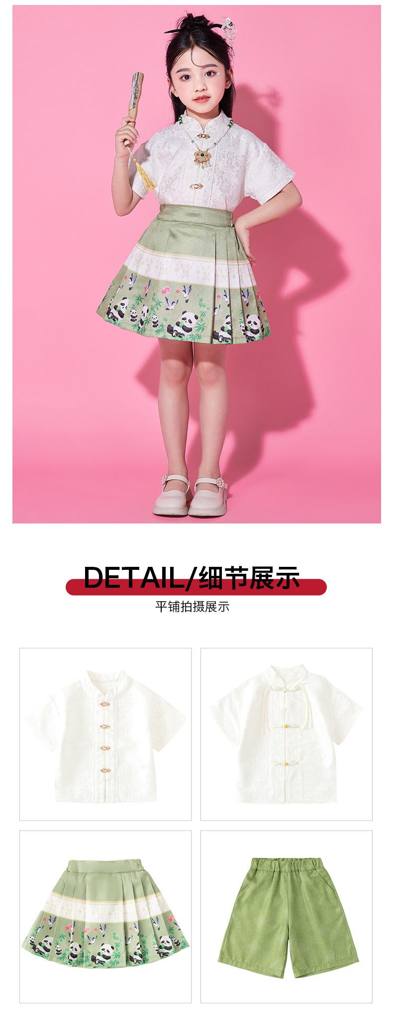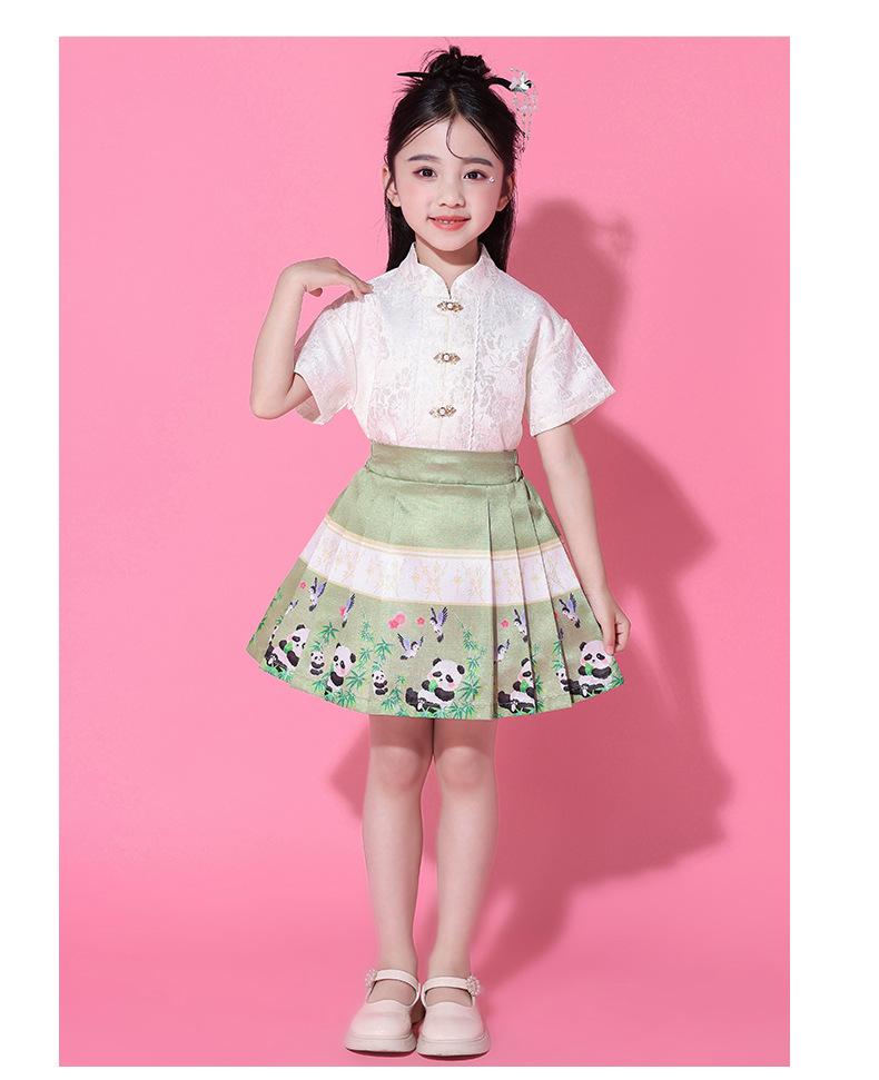 H2028 women's white jacquard short sleeves + h2058 short green panda horse skirt + black white flower hairpin + longevity lock