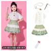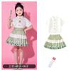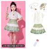 H2028 women's white jacquard short sleeves + h2058 short green panda horse skirt + white ink fan + longevity lock + red striped white socks