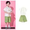 H2027 men's white jacquard short sleeves + h2068 light green shorts + white ink fan