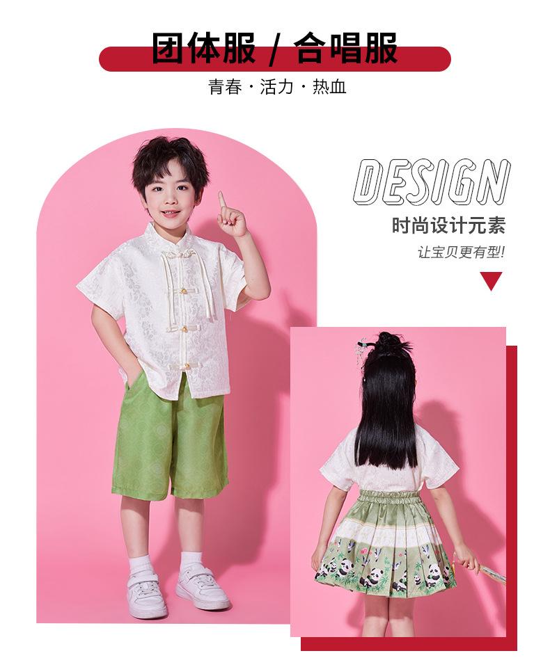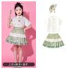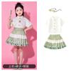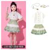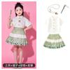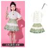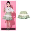 H2028 women's white jacquard short sleeves + h2058 short green panda horse skirt + white ink fan