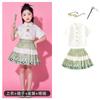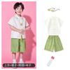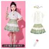 H2028 women's white jacquard short sleeves + h2058 short green panda horse skirt + white ink fan + glasses
