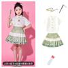 H2028 women's white jacquard short sleeves + h2058 short green panda horse skirt + white ink fan + glasses + red striped white socks