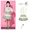 H2028 women's white jacquard short sleeves + h2058 short green panda horse skirt + glasses + longevity lock