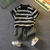 Ropa para Niños Traje de Verano de Manga Corta para Niños 2025 Nuevo Niño Pequeño Fresco y Guapo Bebé a la Moda Traje de Verano de Dos Piezas