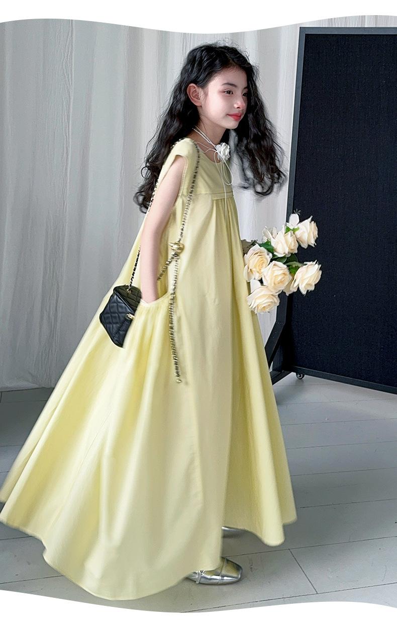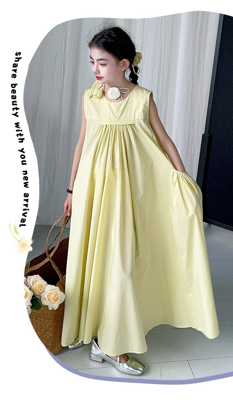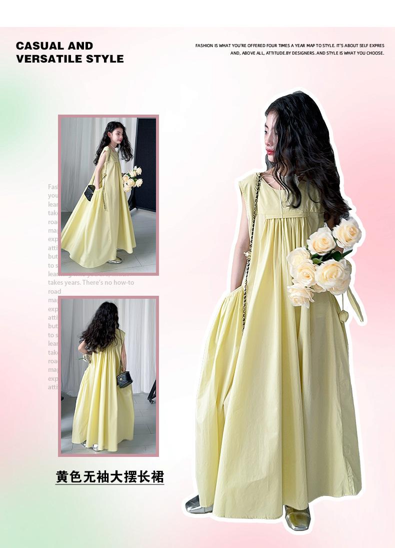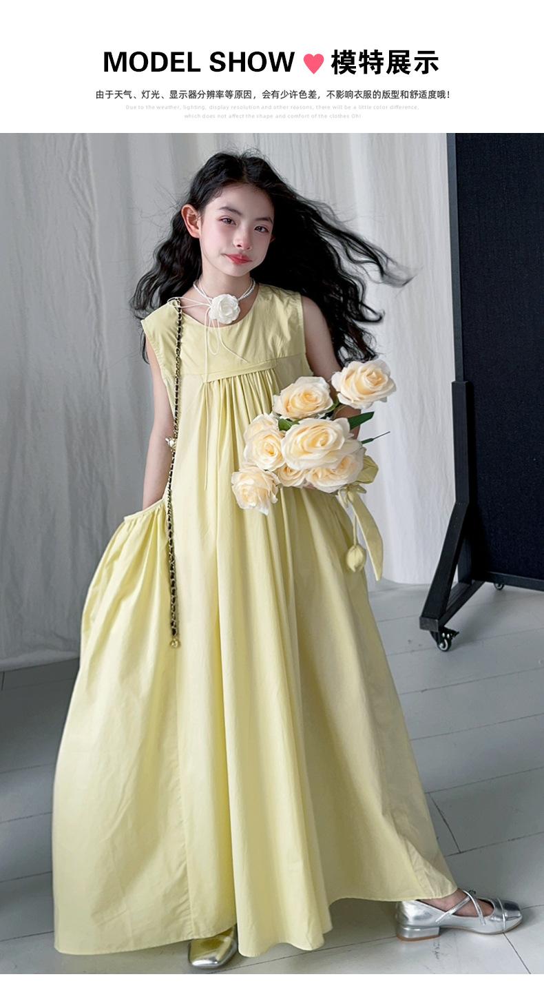 Vestido de niña 2025 Verano Nuevo Estilo Sencillo Falda Grande Falda Larga Niños Medianos-Grandes Estilo Occidental Moda Sin Mangas Falda Vic
