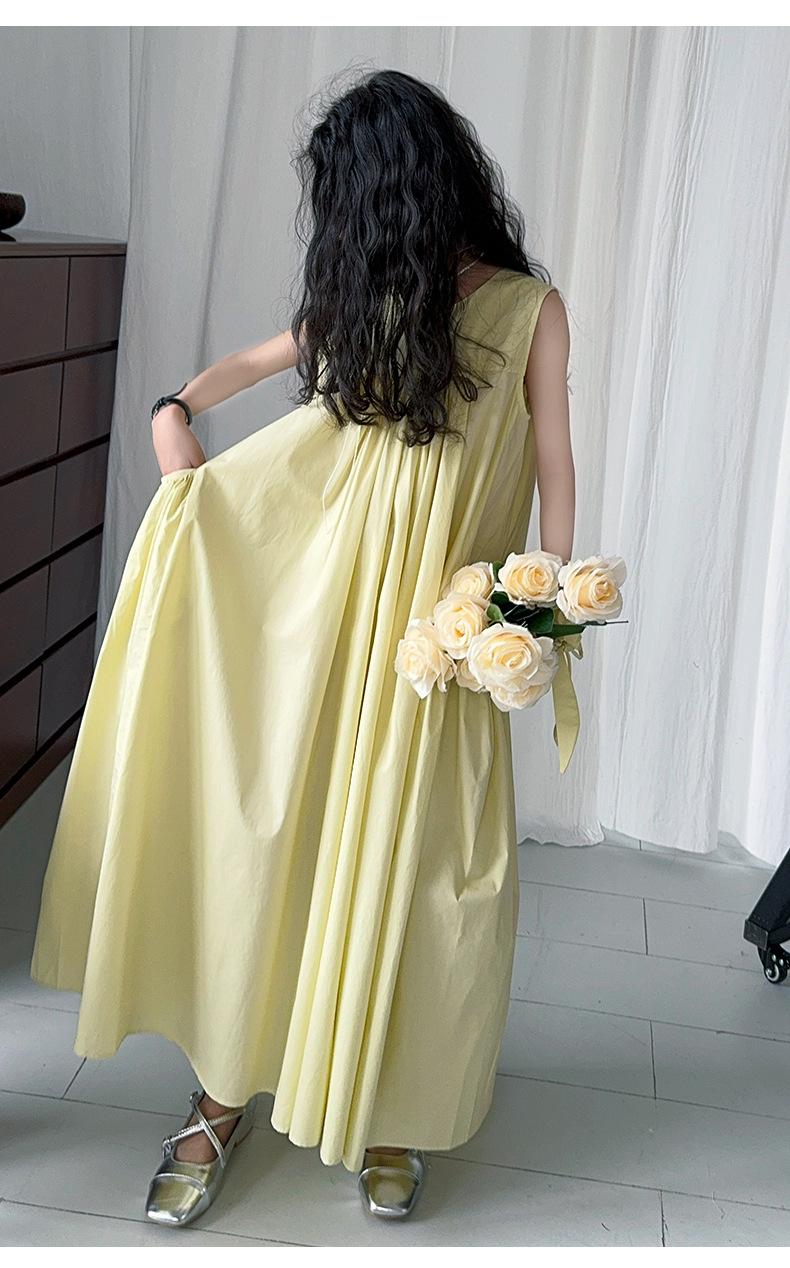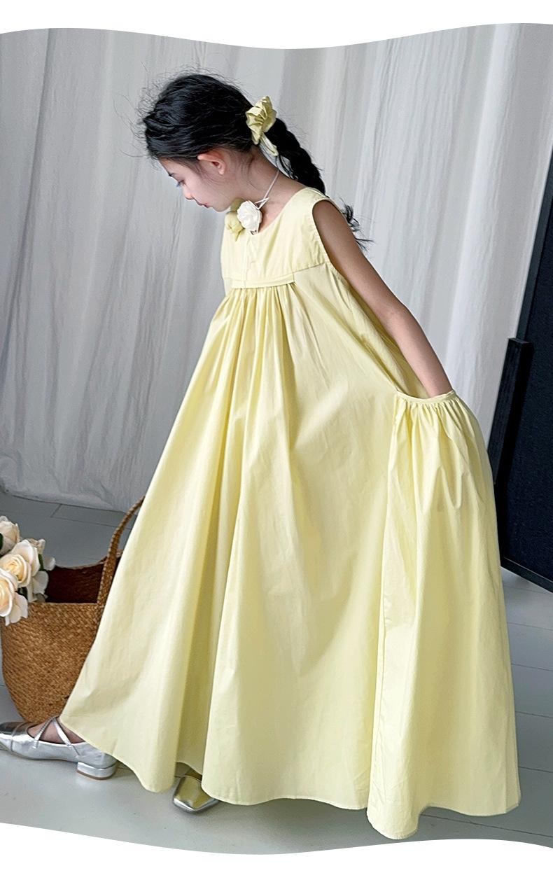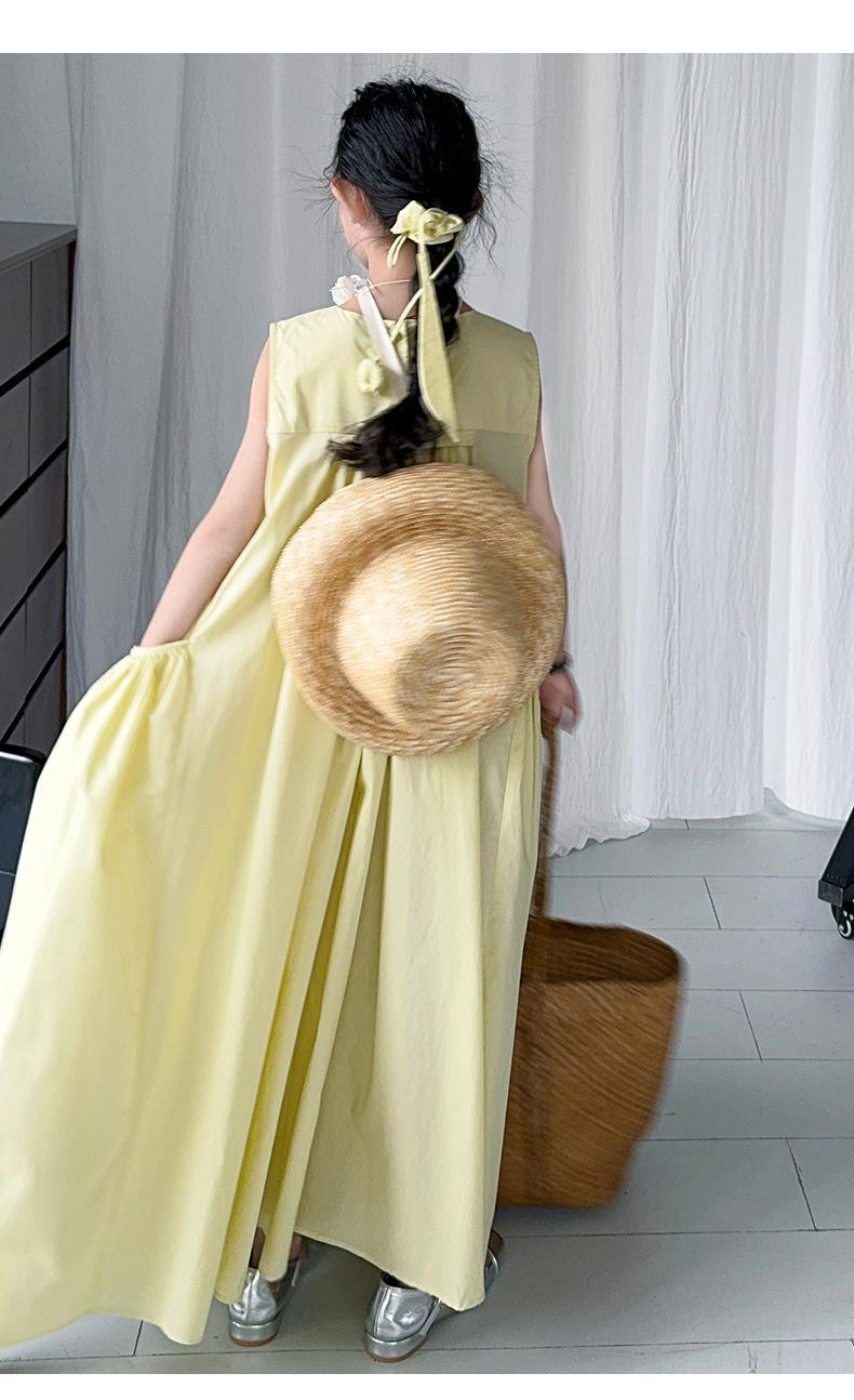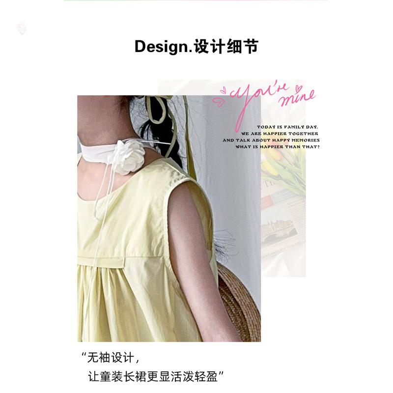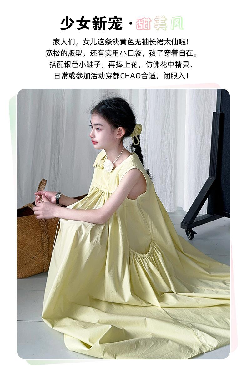 Vestido de niña 2025 Verano Nuevo Estilo Sencillo Falda Grande Falda Larga Niños Medianos-Grandes Estilo Occidental Moda Sin Mangas Falda Vic