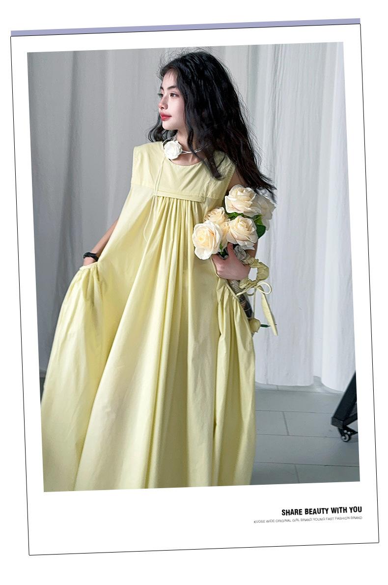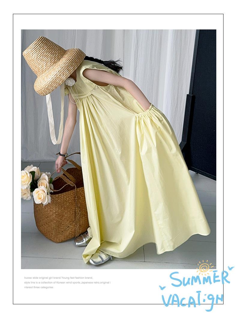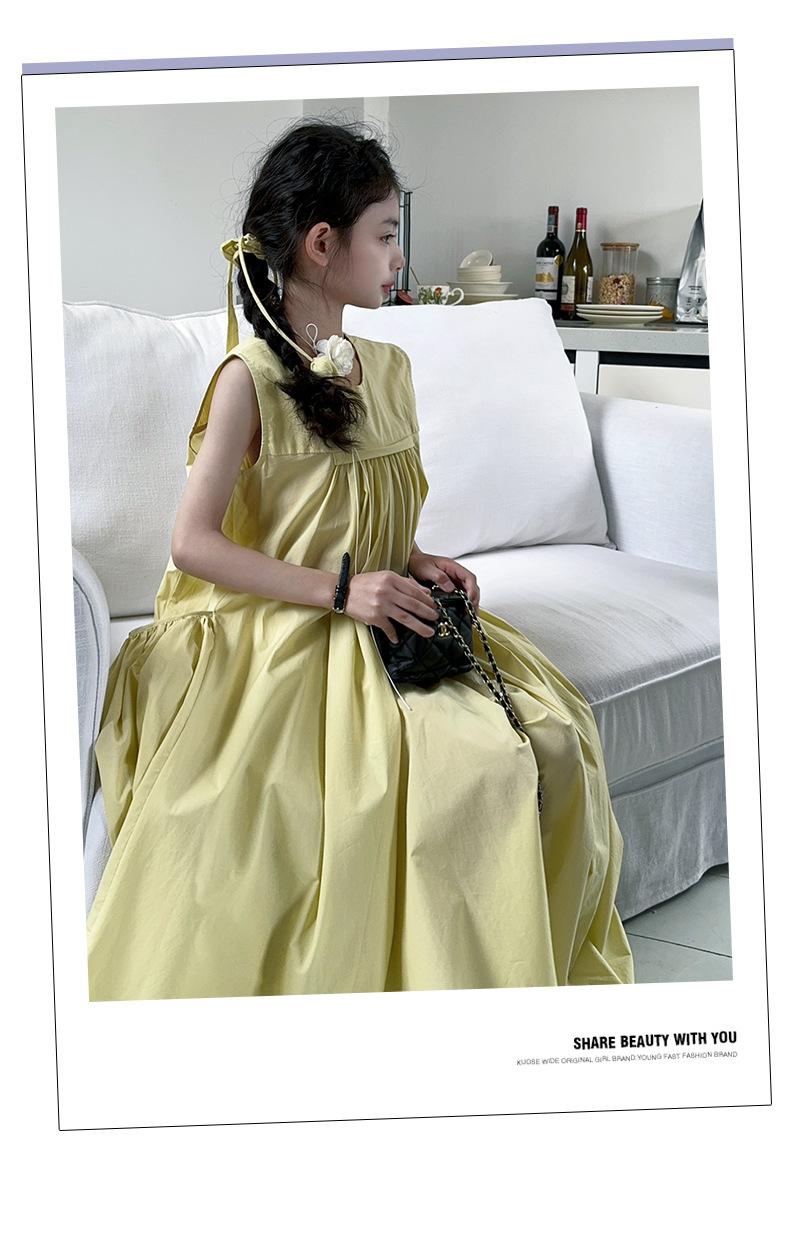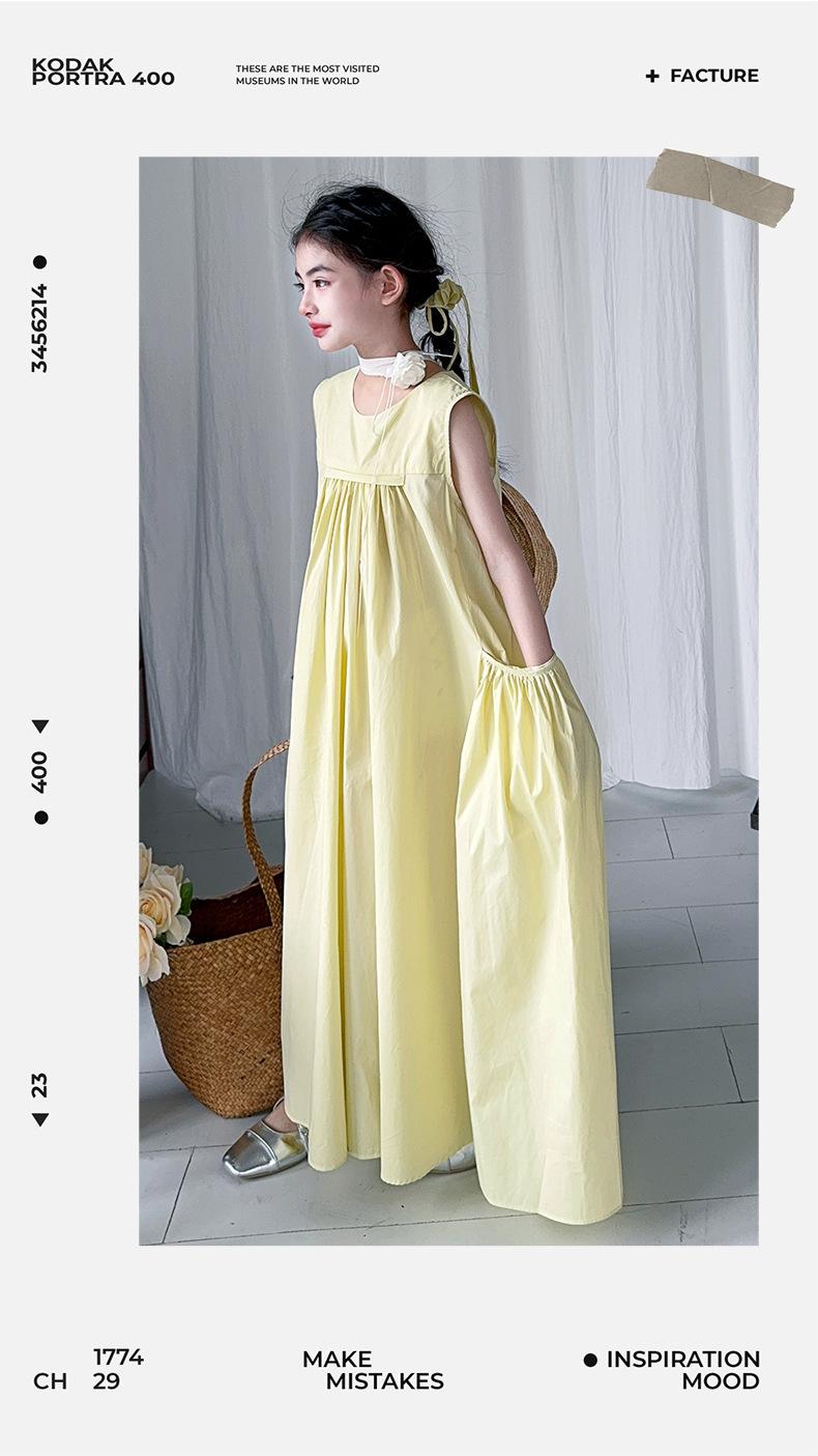 Vestido de niña 2025 Verano Nuevo Estilo Sencillo Falda Grande Falda Larga Niños Medianos-Grandes Estilo Occidental Moda Sin Mangas Falda Vic
