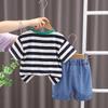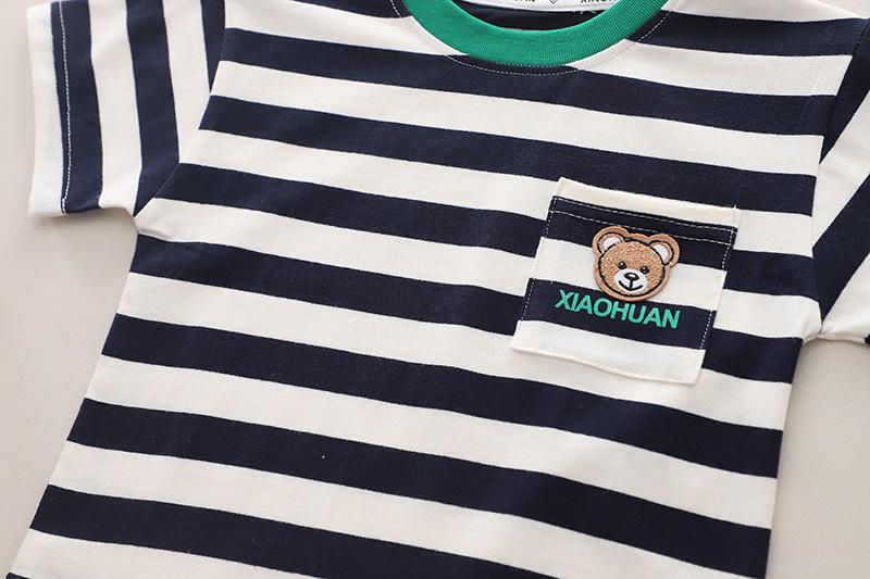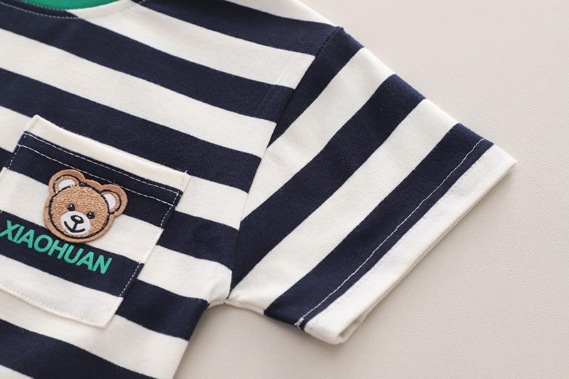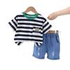 Ropa para Niños Traje de Verano para Niños Verano 2025 Nuevo Estilo Bebé Rayado Manga Corta Shorts Conjunto de Dos Piezas Moderno