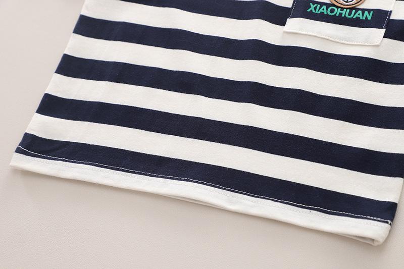 Navy blue striped denim short sleeves