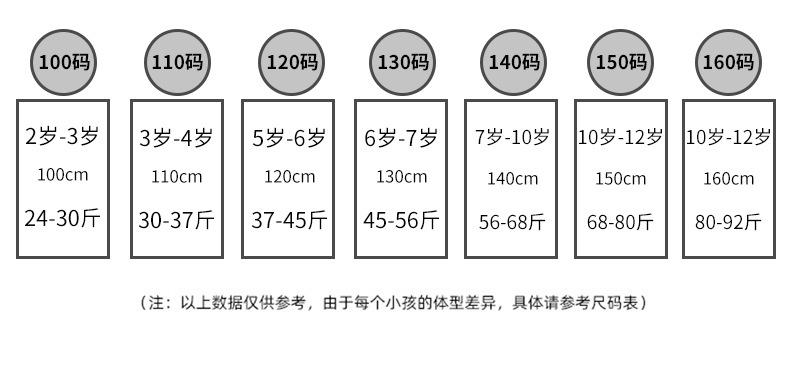 100cm, 110cm, 120cm, 130cm, 140cm, 150cm, 160cm