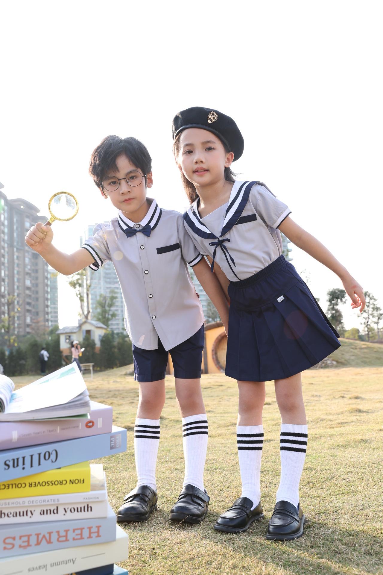 Conjunto de Uniforme Escolar Estudiantes de Secundaria Ropa de Campus Personalizada Verano Ropa de Trabajo para Maestros Niños de Primaria Ropa Casual Mangas Cortas