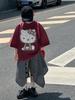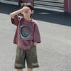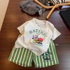 Camiseta Holgada Rayada Estilo Coreano para Niños Medianos y Grandes 2025 Verano Nuevo Top de Manga Corta Trendy para Niños