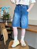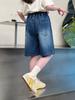 Pantalones de Moda de Media Longitud para Niñas Shorts de Mezclilla Elegantes para Niños Pantalones Cortos Hot Pants para Niñas Verano 2025 Nuevo Estilo