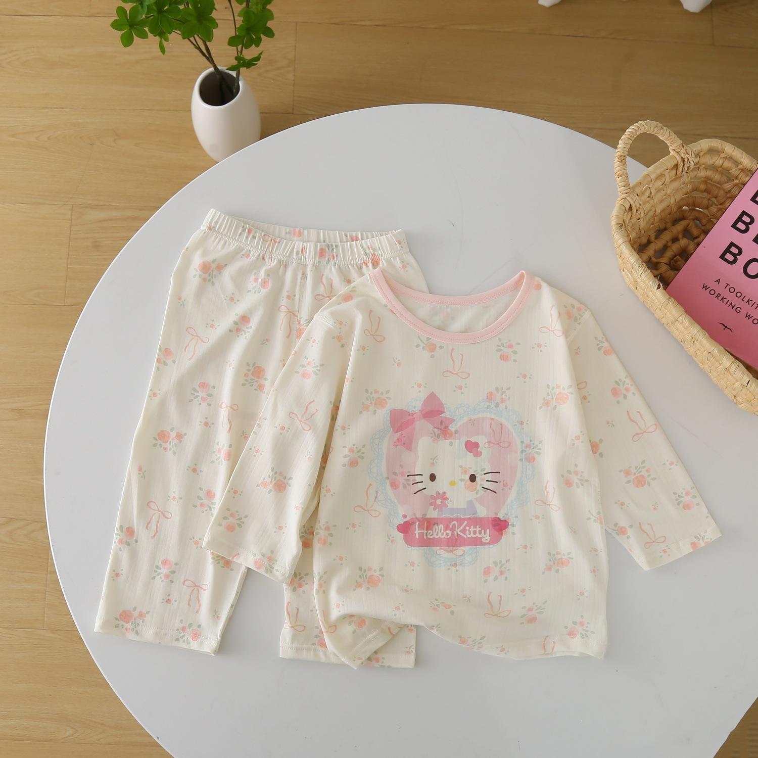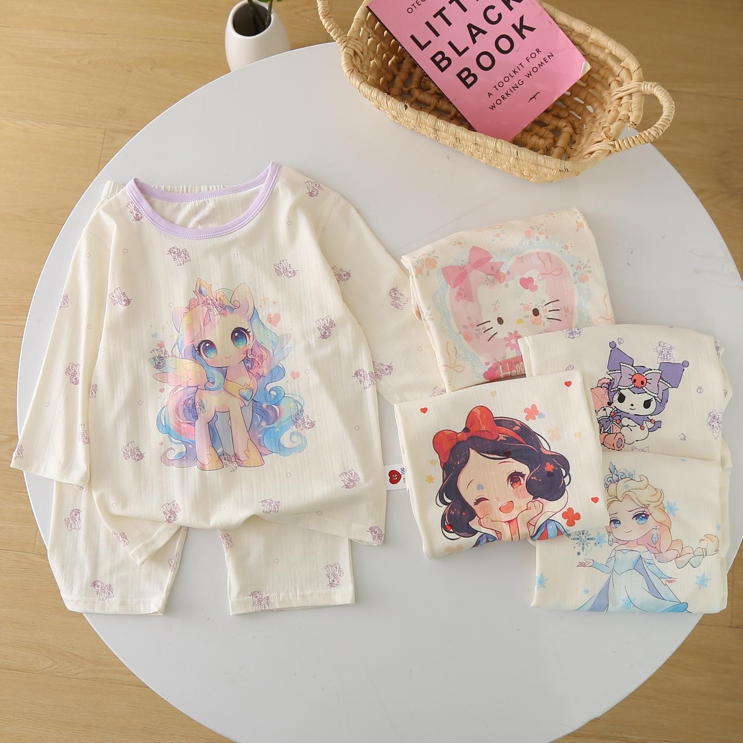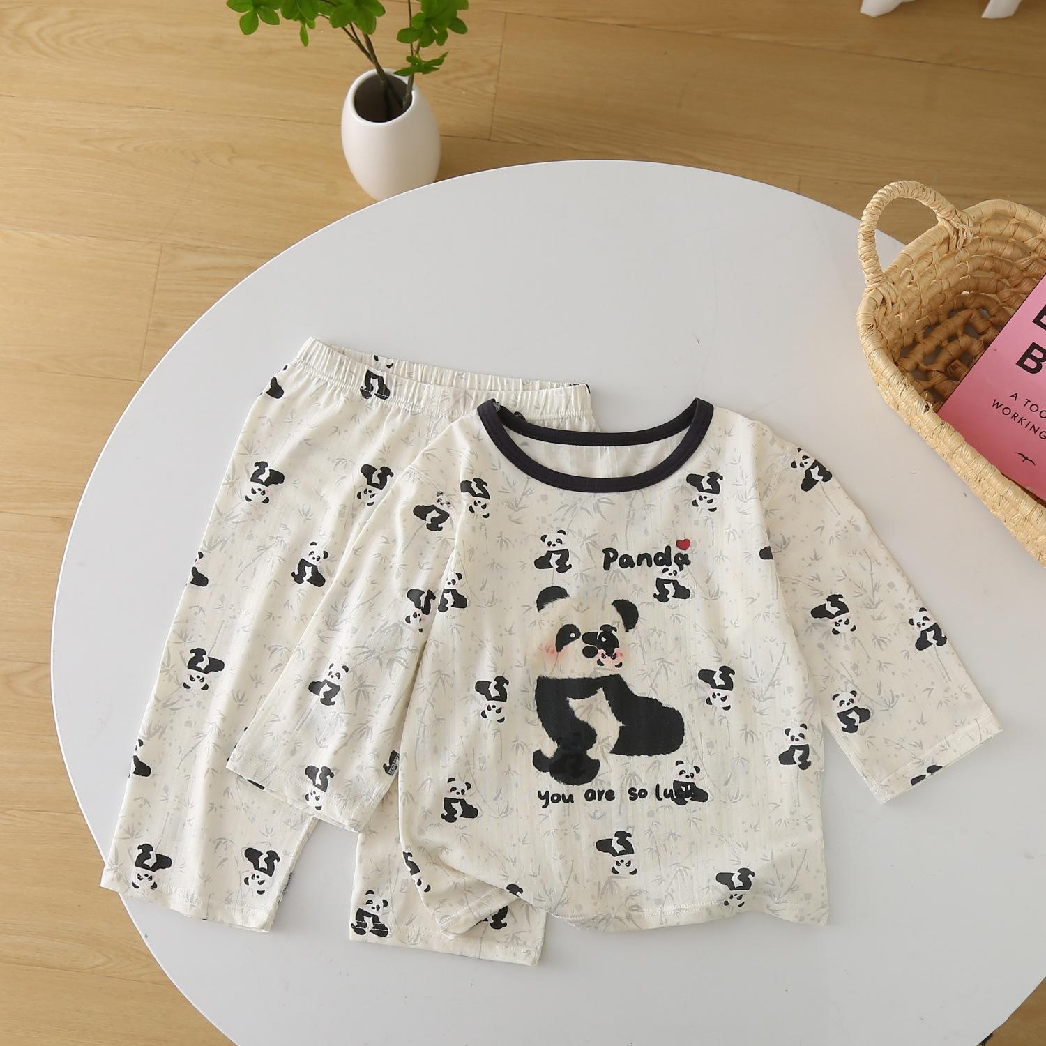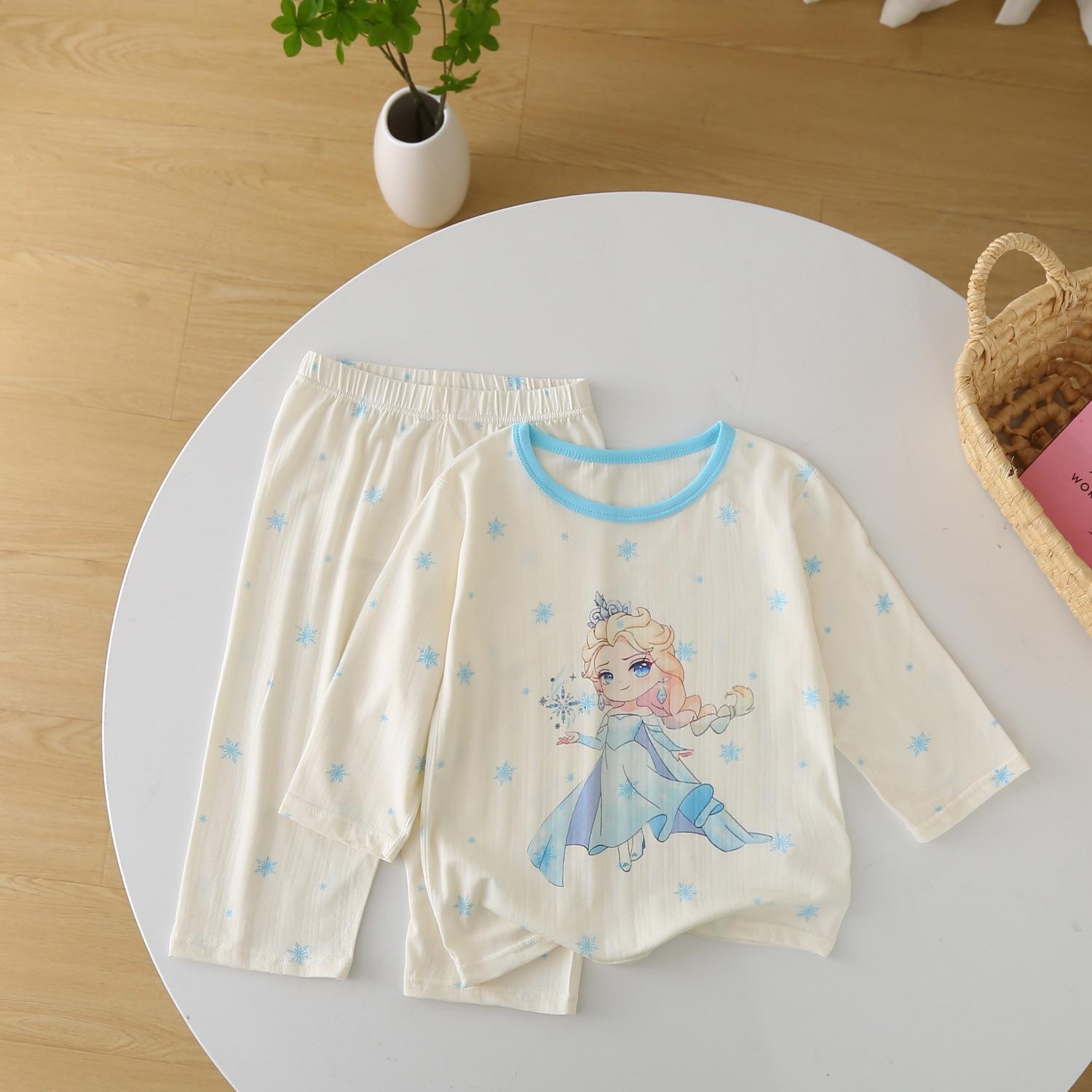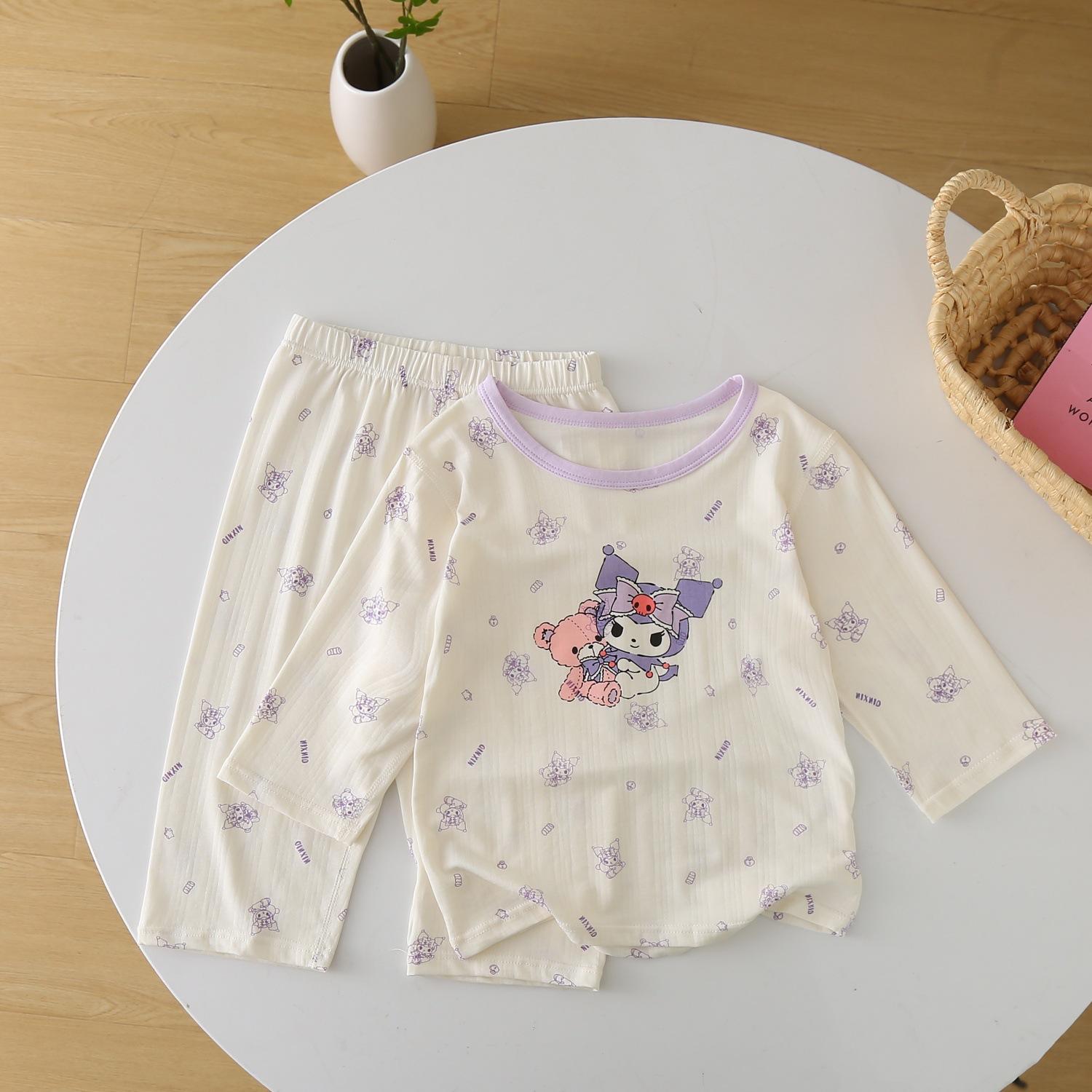 Ropa para niños Traje de verano para mujer Ropa delgada de verano Pijama de algodón modal con estampado de dibujos animados Ropa de aire acondicionado para niños Pijama para niños