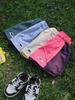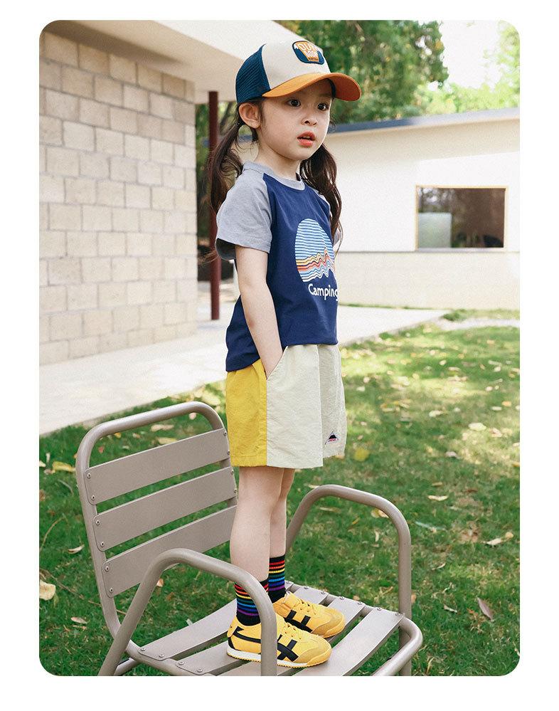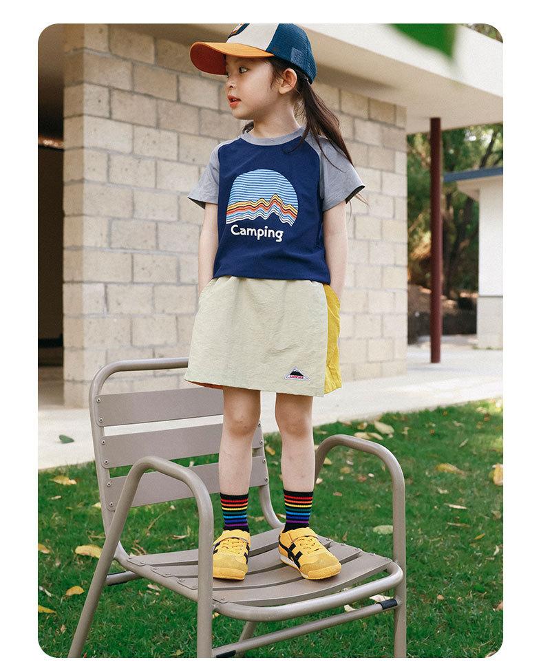 Pantalones para niños verano 2025 pantalones cortos color dopamina para niñas pantalones falda con costuras en contraste para bebé una generación de cabello