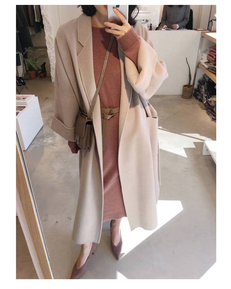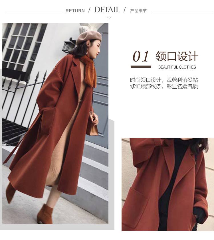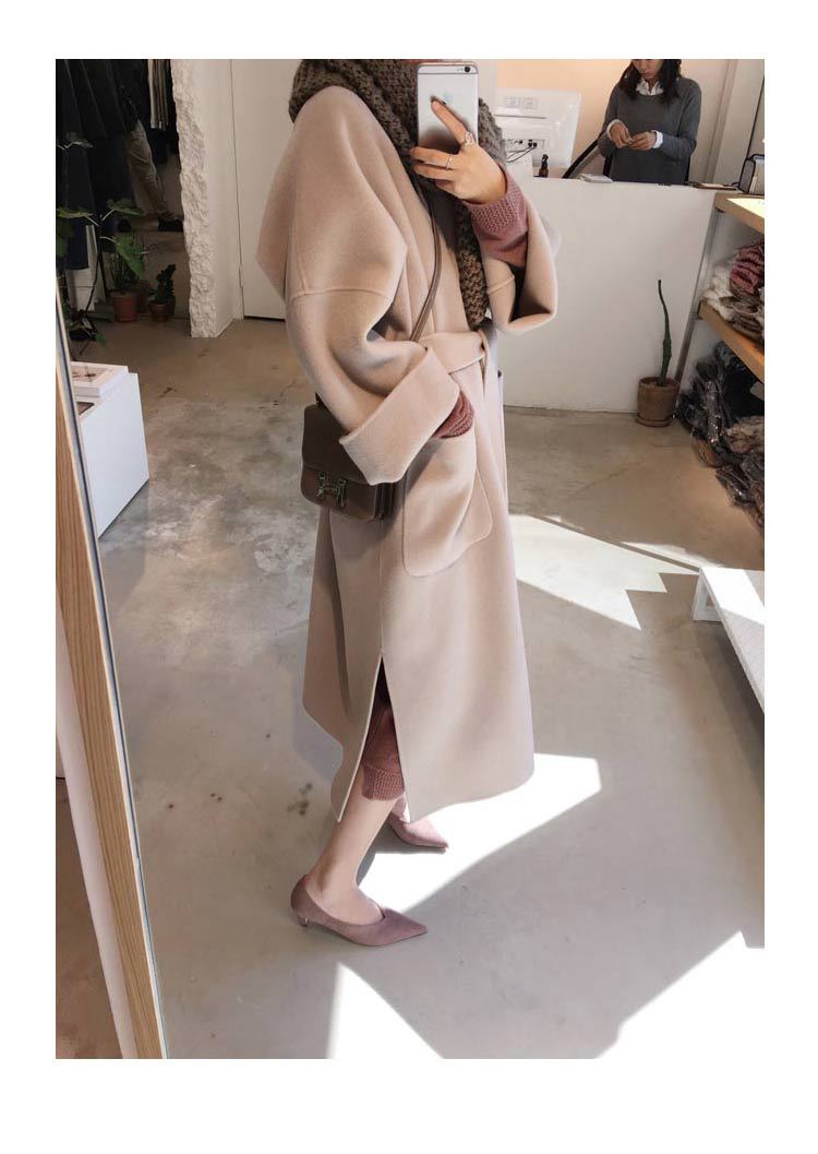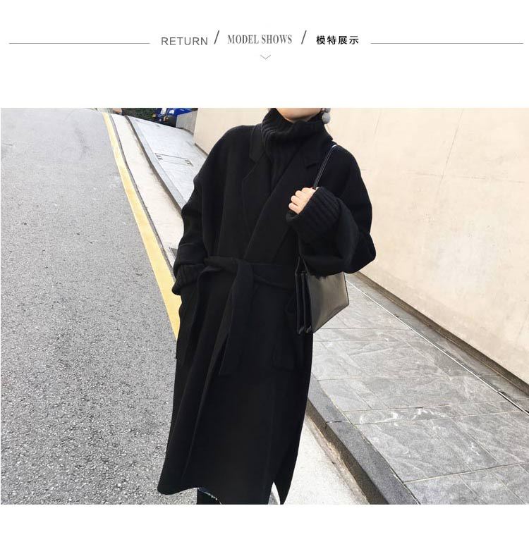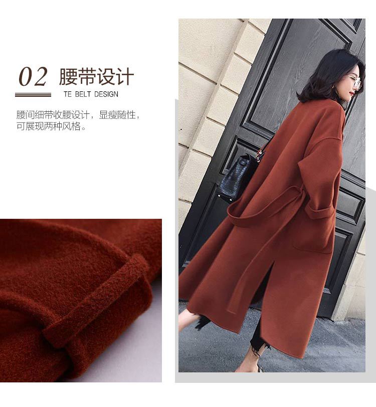 Abrigo de lana de estilo Hepburn coreano nuevo de otoño e invierno transfronterizo para mujer, popular de largo medio, grueso de doble cara