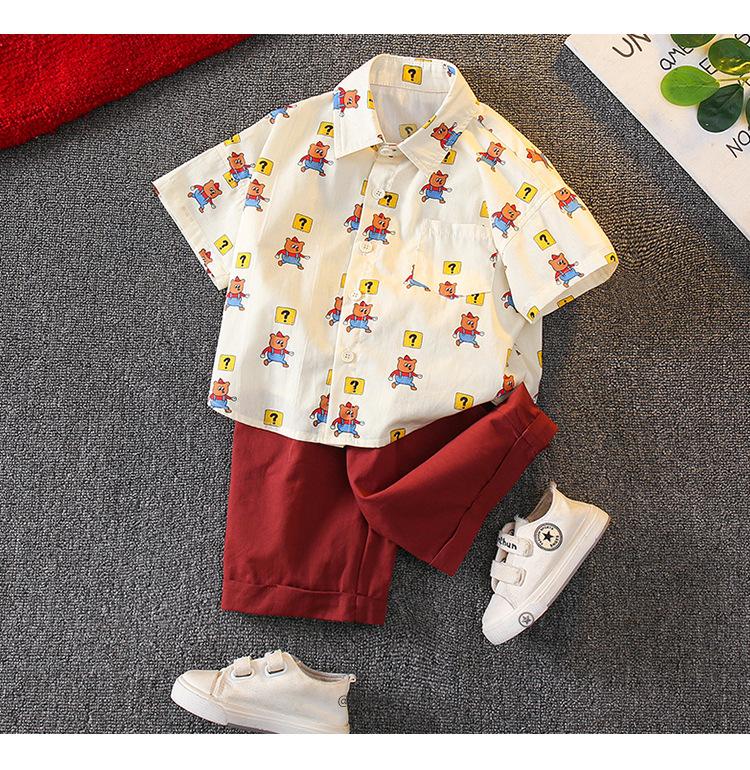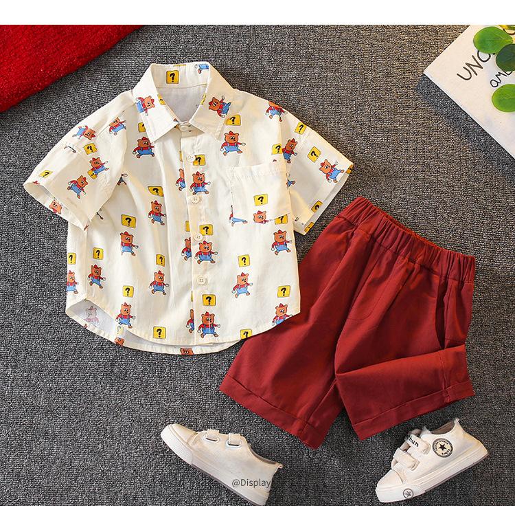 Traje de Verano para Niño 2025 Nuevo Traje de Camisa de Verano de Manga Corta para Niños Guapo Bebé Niño Verano Moderno