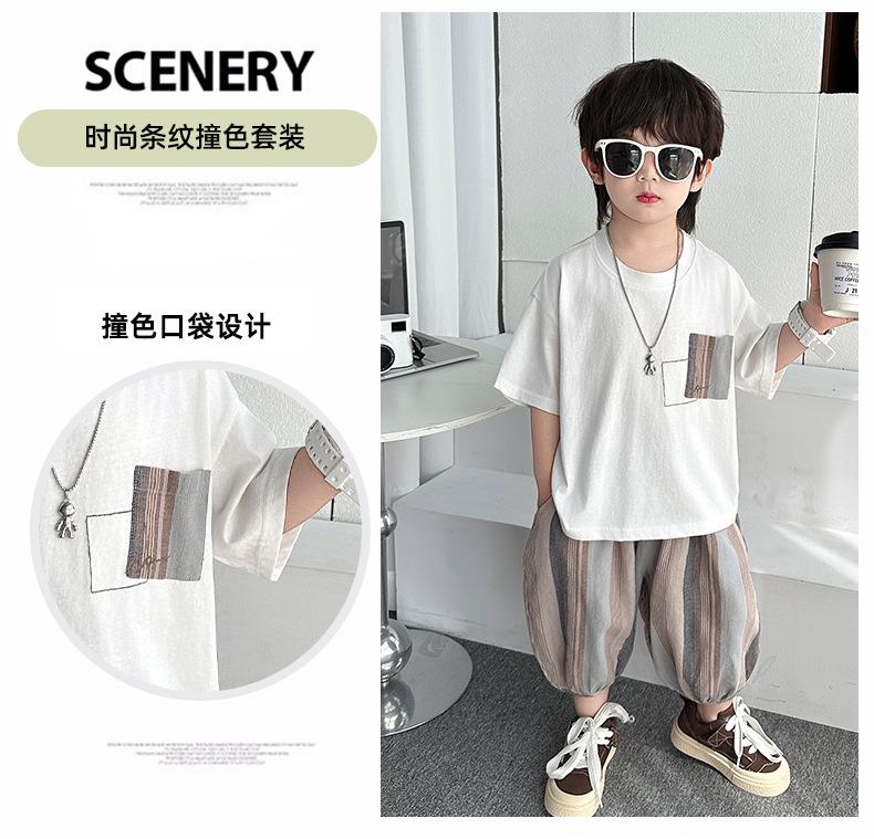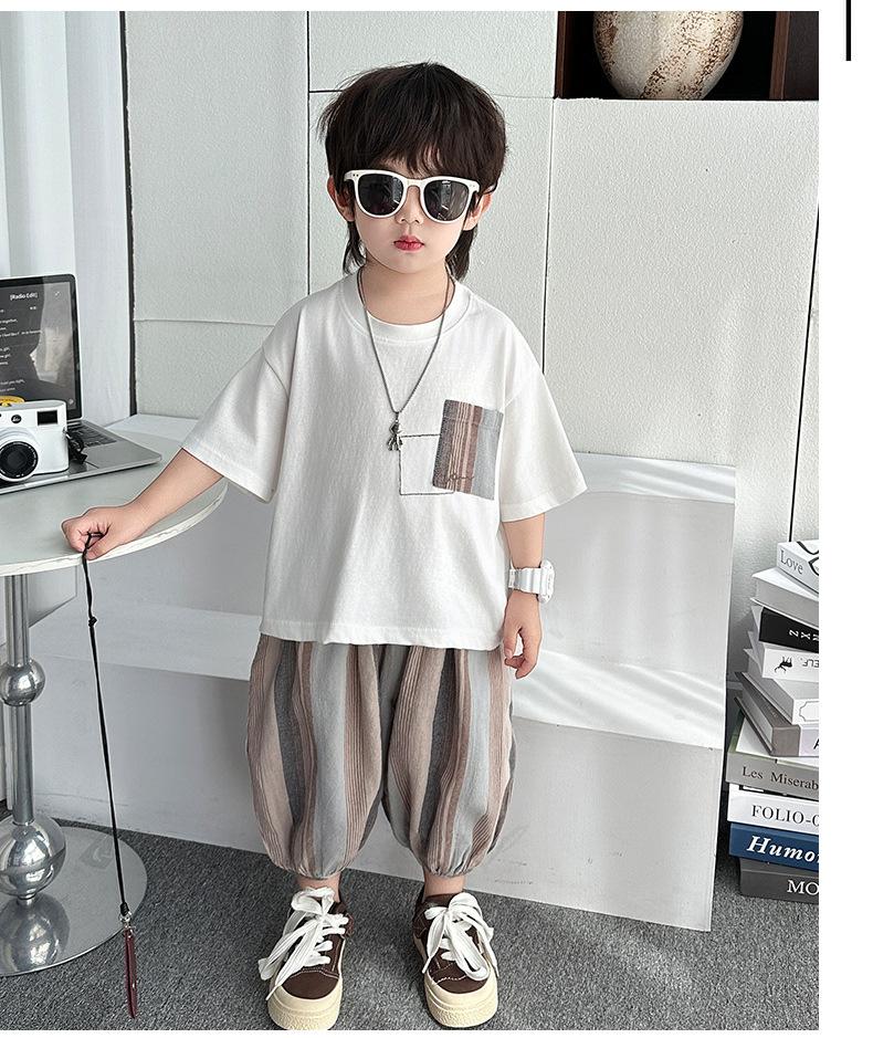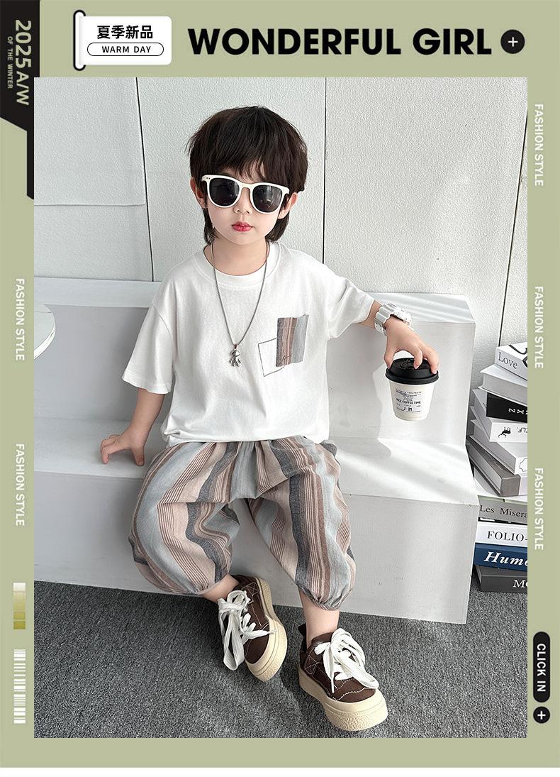 Traje para niños Verano 2025 Nuevo Estilo Occidental Bebé Pantalones Antimosquitos Ropa de Verano para Niños Moderna de Dos Piezas