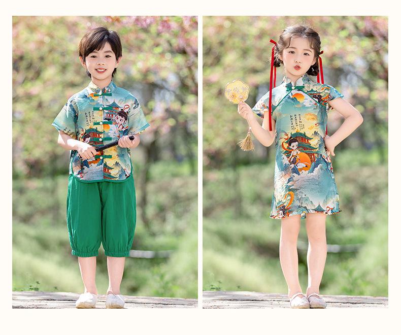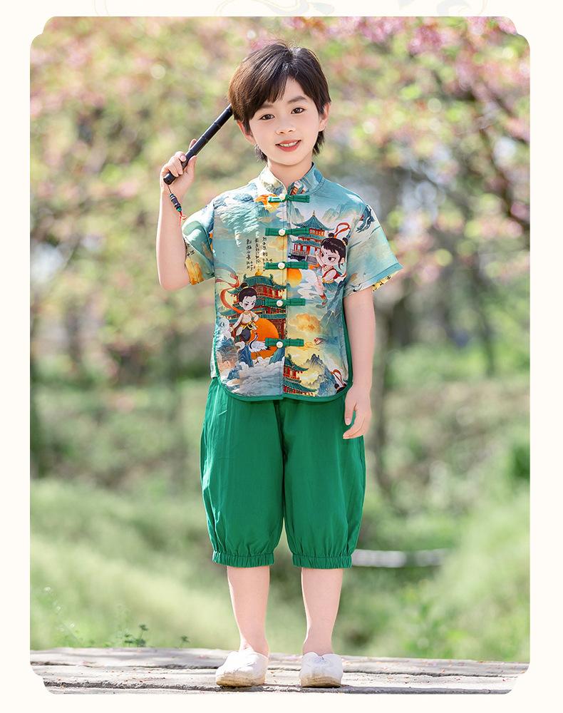 Traje Tang Hanfu de estilo chino nuevo para niños Nezha Traje para el Día del Niño Disfraz para actuación Jardín de infancia Lindo Traje antiguo Uniforme de clase Disfraz para actuación de baile