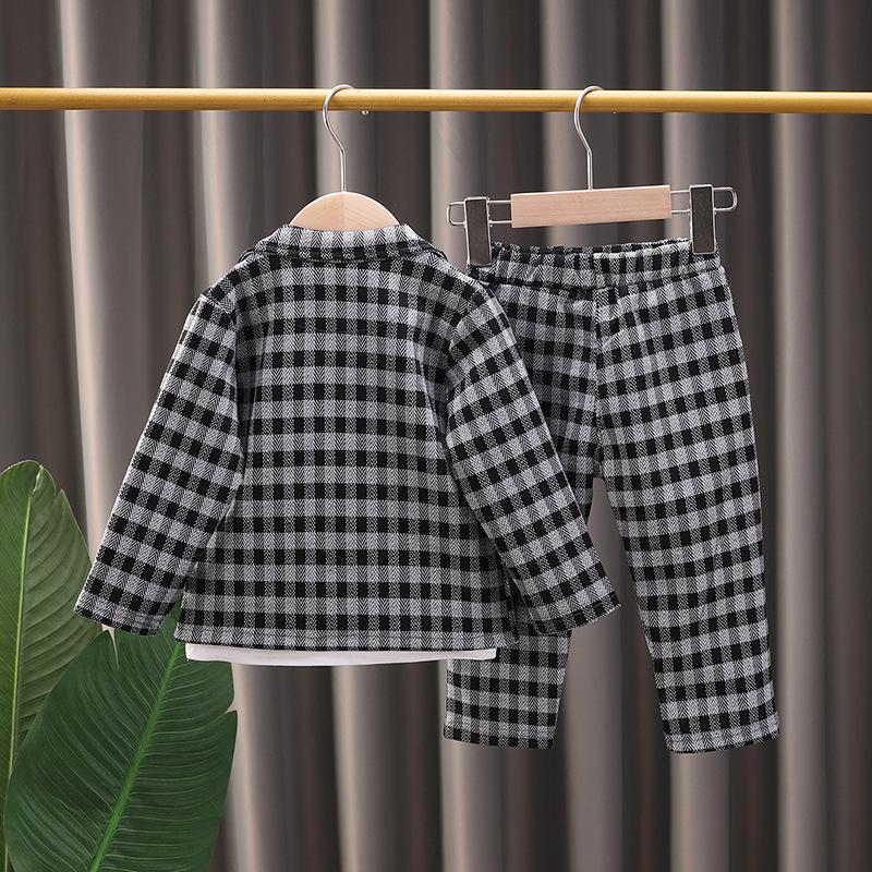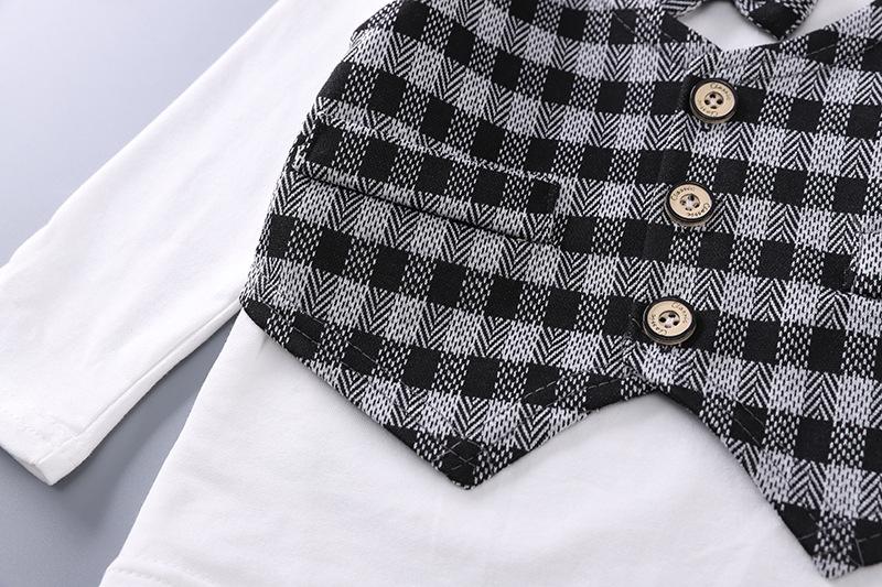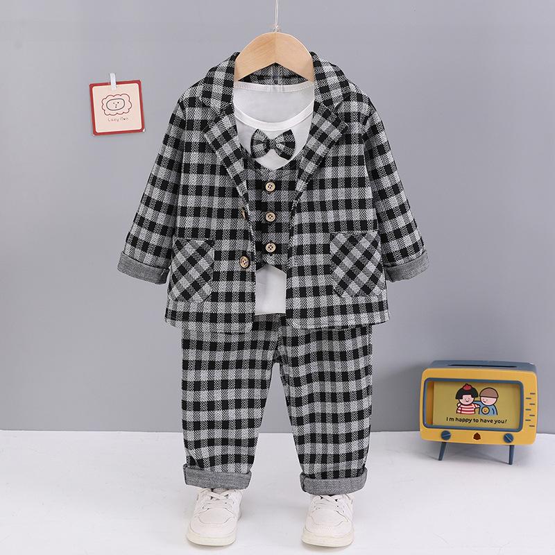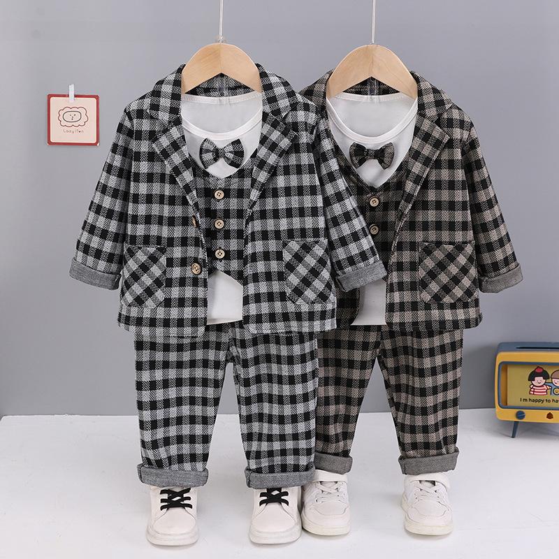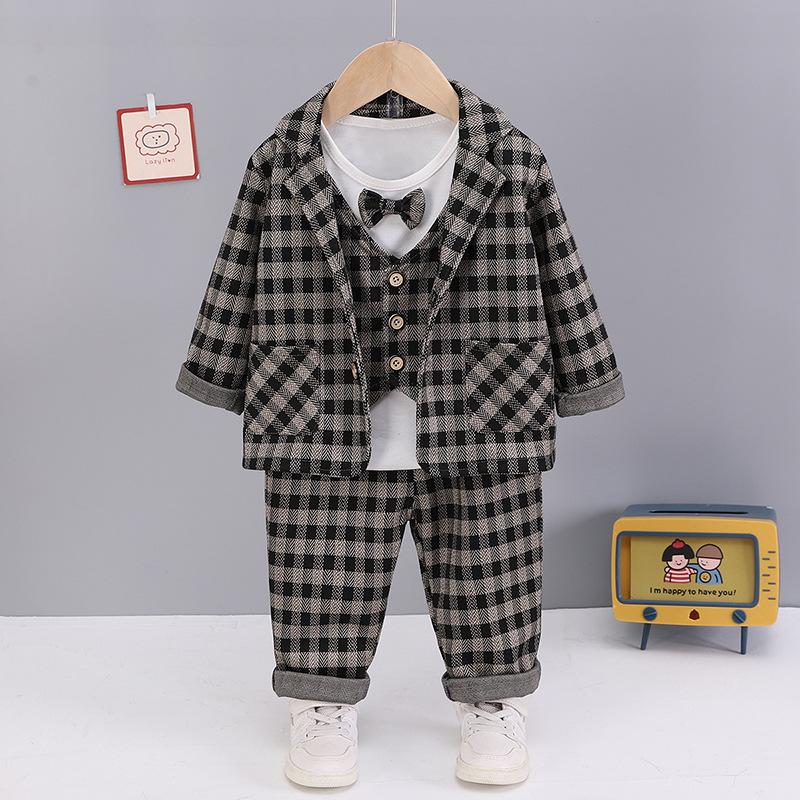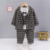 Traje para niño Traje nuevo Infantil a cuadros Bebé Vestido de un año Traje británico Niño de las flores Traje de tres piezas Traje de primavera y otoño