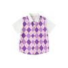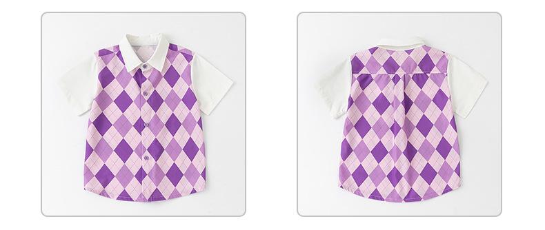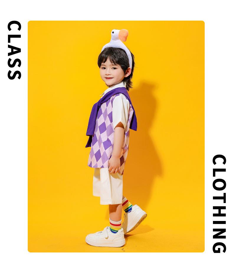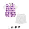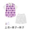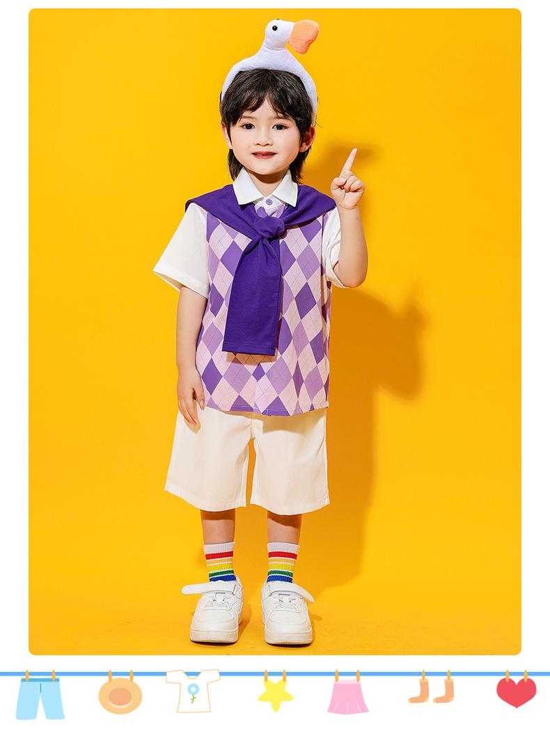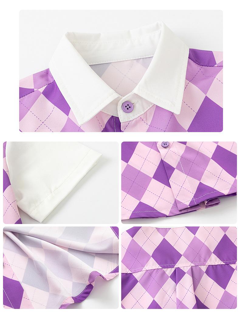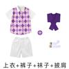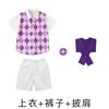 550 purple plaid shirt + 875 white shorts, 550 purple plaid shirt + 875 white shorts + rainbow socks, 550 purp...