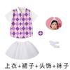 550 purple plaid shirt + 234 white gauze skirt + white duck headdress + white socks