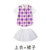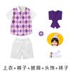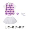 550 purple plaid shirt + 234 white gauze skirt + dark purple shawl + white duck headdress + white socks