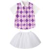 550 purple plaid shirt + 234 white gauze skirt + white socks