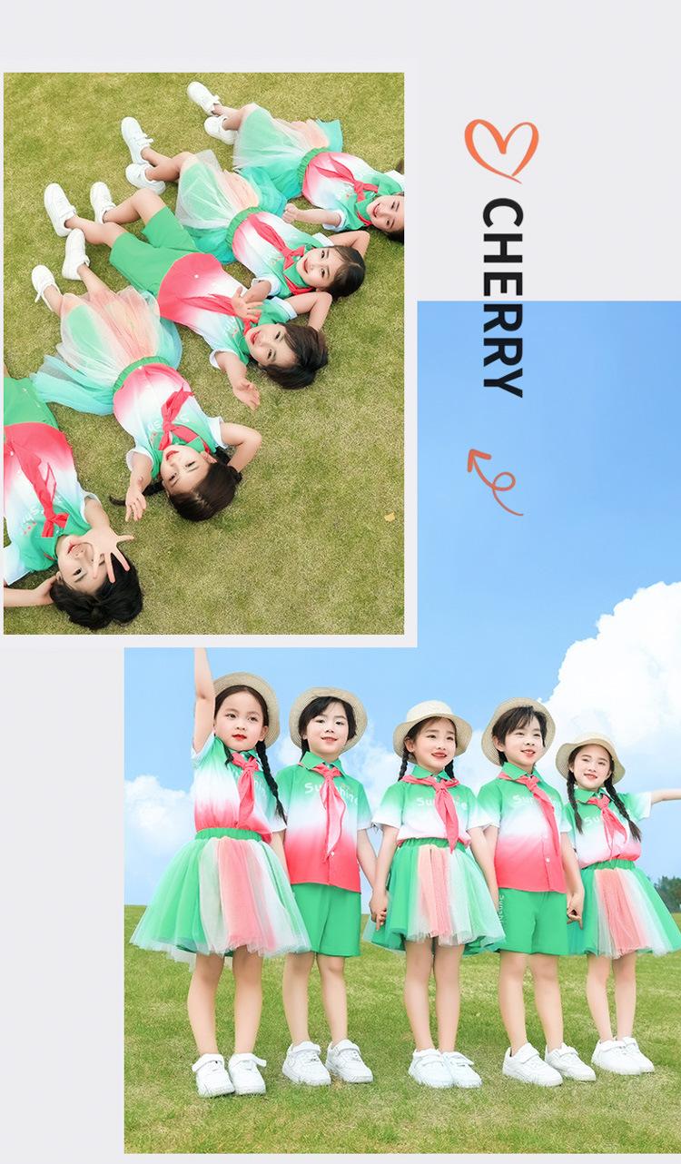 Ropa de Actuación para Niños, Ropa de Coro para Estudiantes de Primaria, Traje de Verano de Manga Corta, Falda de Gasa, Ropa de Baile Linda, Ropa de Actuación para Jardín de Niños