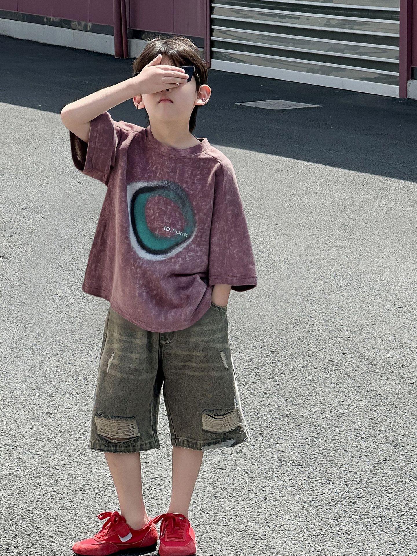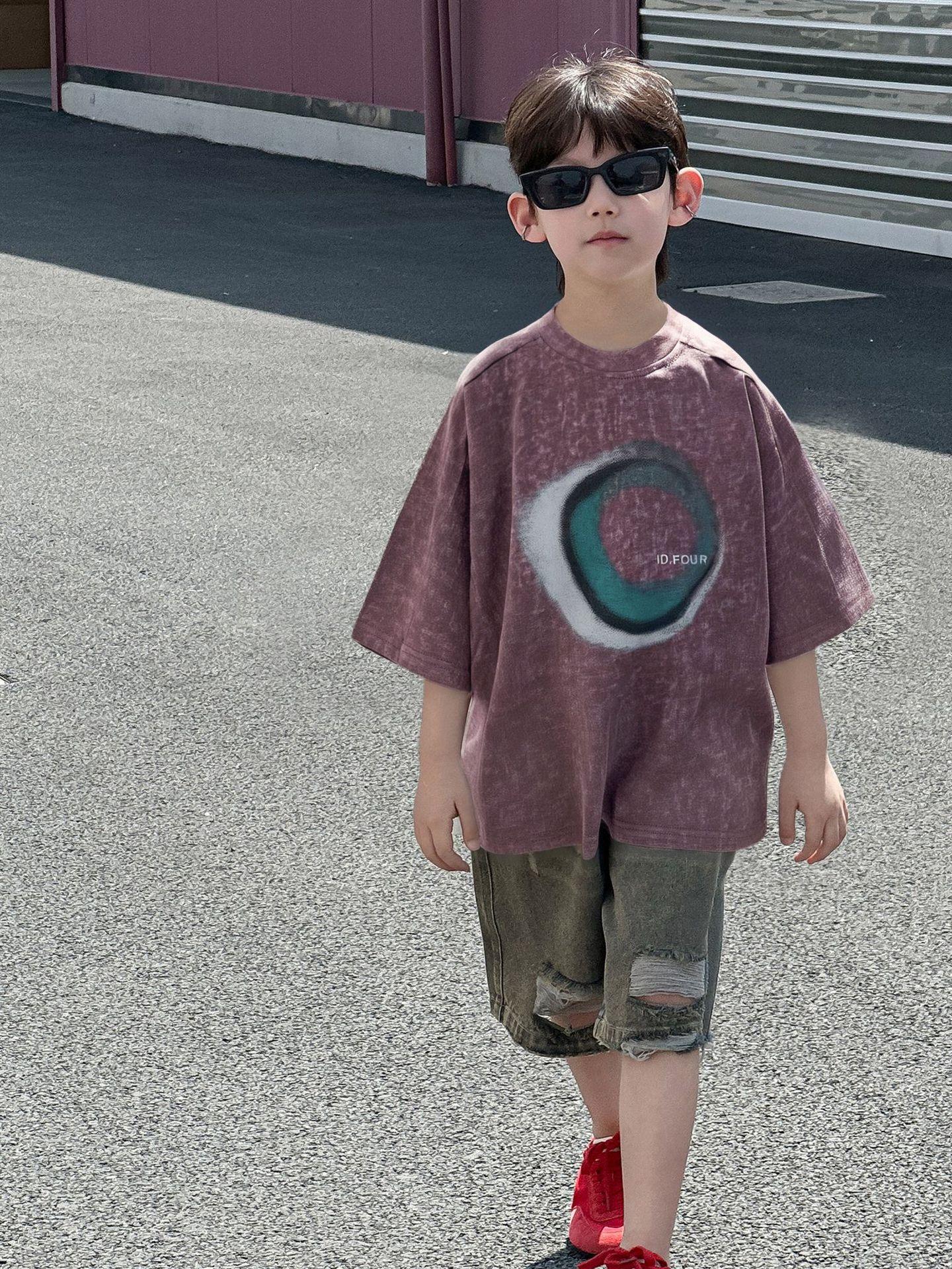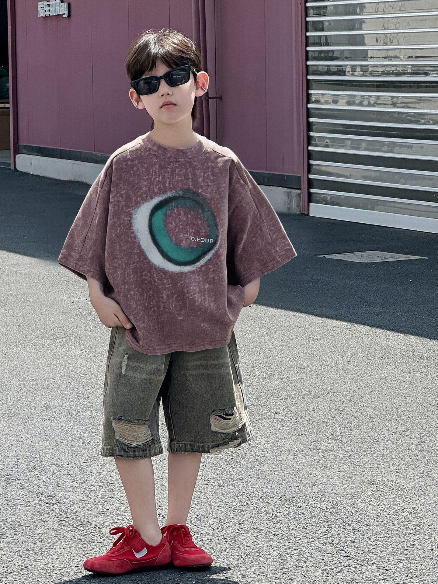 Camiseta de Verano de Manga Corta para Niño Ropa de Verano para Niños de Estilo Coreano 2025 Nueva Retro Suelta Delgada Moderna